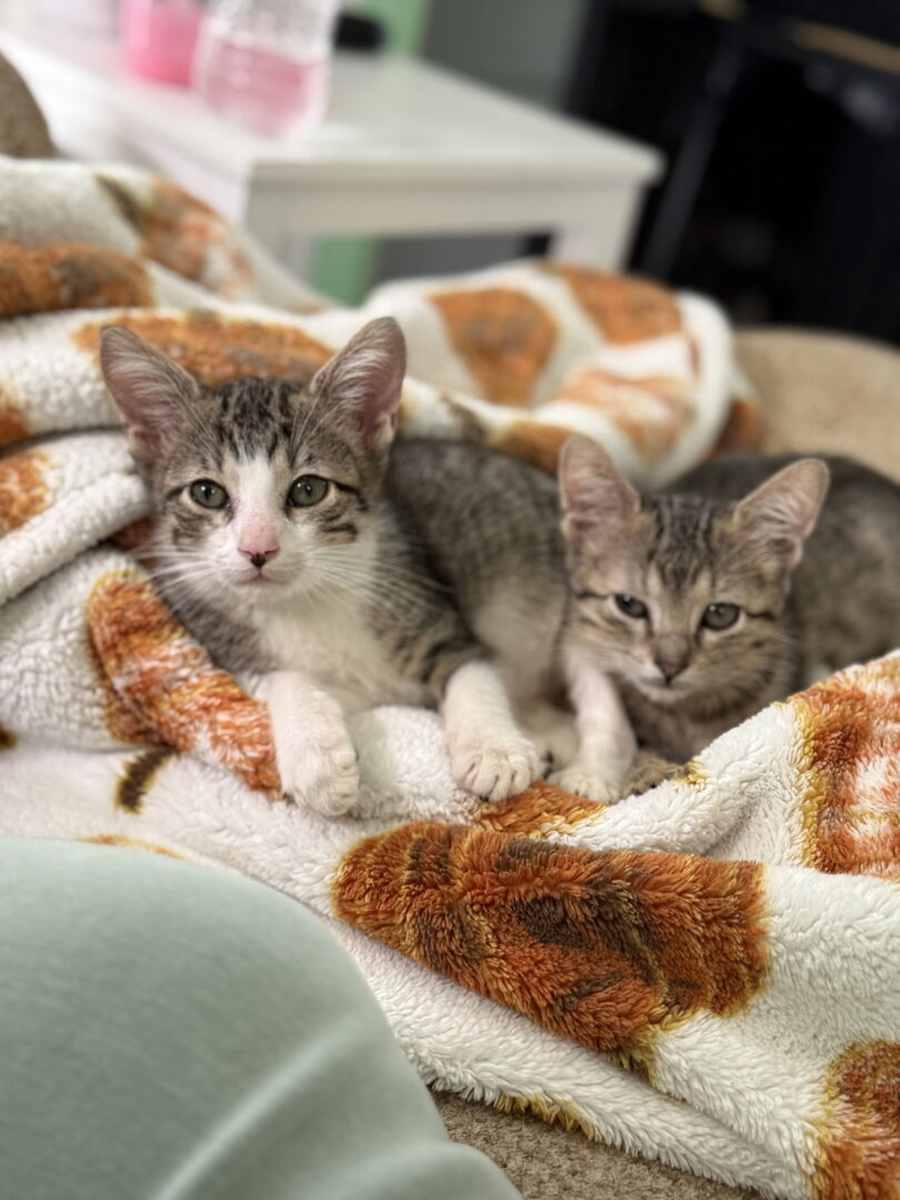 Hi there, I’m Rune, and I am a two month old brown tabby kitten with white legs! My sister Vesper and I are looking for our forever homes! I am a very typical kitten— I love to play with coil toys, wrestle with my sister, and curl up with my foster mom to get some pets. I have a super loud purr, but I am a quiet kitten and won’t wake you up in the middle of the night! I am sweet and cuddly, and I would be perfect for a first-time cat owner! My adoption fee is $125, but if you adopt me with my sister Vesper, our adoption fee would be $200. Our adoption fee includes our vaccines, microchipping, and my neuter procedure. Right now, I am too small for my neuter appointment, but if I am adopted before my final vetting appointment, my new family can take me to get neutered, and SOCA will pay the vet bills. My foster mom will be taking me to the adoption events at the PetSmart in Fulshear on Saturdays from noon to 3 PM. I would love to see you there!