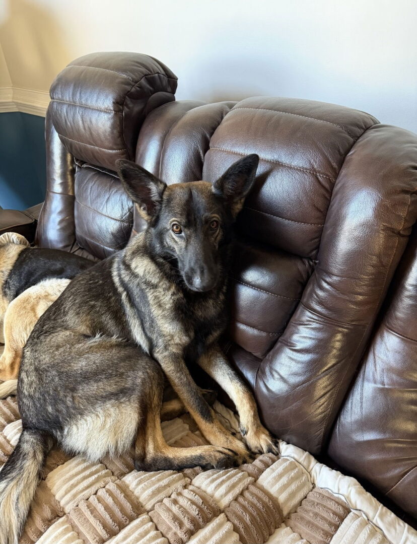 See Ryah – Adoption Pending’s HomepageGo to our official websiteYou can fill out an adoption application online on our official website.Ryah is a 2 year old, 60 pound, loving, German Shepherd that, at times, still acts like a puppy. Her friskiness is amazing to see and watching her grow and be herself over the last several months has been a pleasure. She loves to play with other dogs, both large and small. She is small child friendly but has not met any cats. She enjoys playing with toys and can be a toy hog because if the others are not paying attention, she will take them from them. She will grab a toy to take along on walks, too, and is a pro at fetch. She also adores playing in the water, jumping in the pond to swim a bit, regardless of the weather. She does great on pack walks and takes cues from my dogs. If something catches her eye, though, she will take off but comes back afterwards. Ryah will need a big yard or will need to be taken on a lot of walks because of her energy level. Ryah is extremely agile and will need a home with an, at least, 6 foot high fence. While she is friendly towards everyone, she is protective of female humans in the home and will need slow, off property introductions with men she does not know. Ryah is housebroken and crate trained and knows how to use a doggie door with ease. She is not food aggressive and will share her food, mostly because she is busy getting into everyone else's LOL! She will sit nicely, lay down for treats and wait patiently for her food. She does a silly flop when you ask her to go from sitting to laying down. She will be a great protector and cuddle partner at the same time. She has a lot of love to offer someone. If she is exercised and engaged, she would be okay as a single owner dog, but I believe she would be better with a friend to play with and lots of toys. If you are interested in adding Ryah to your family, contact your adoption coordinator. If you do not yet have an adoption coordinator, please complete an adoption application at www.freedomgermanshepherdrescue.org . Ryah is being fostered outside of Fayetteville, NC.