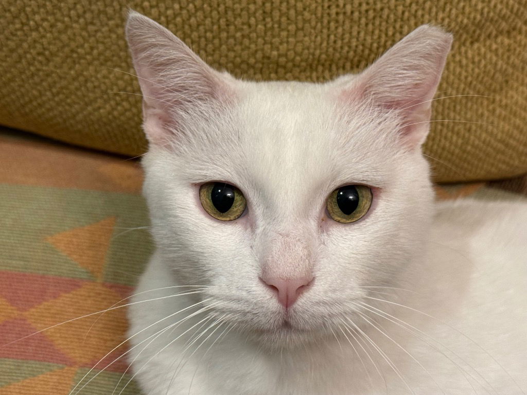 Hi, I’m Sadie! I love to be petted. I hear people exclaim howsoft my white fur is when they touch me. I especially lovegentle head holds & will joyfully ram my head into the palm ofyour hand for one. My foster describes me as sweet, smart,curious & perky, in a chill sort of way. I really like being closeto my human companion(s) & often get in their lap. I have agentle nature & am extremely careful when taking a treat froman open hand. I have the stable presence of a mature cat butI’m also young at heart. My favorite toy is a long streamer ofcloth tied to the end of a stick. I LOVE chasing it around.My foster found me wandering alone in a woodsy area inmid-May, looking for meals where I could find them. She sawmy ear-tip, which means that I’m spayed. It has been such arelief not to worry about having kittens all the time. Theneighbors thought I was declawed & they worried about mysafety as a white, declawed cat in an area where coyotes &owls roam. That’s when my foster picked me up. But shequickly found out that I still have all my claws—they were justneatly trimmed. I heard her say “Good!” and she seemedrelieved—and I agree, it is good to have trimmed claws,because I love to make biscuits in a nice, soft lap.No one knows my story before that. I’ve heard certainphrases in their conversations, all ending in questions, like“missing pet?” and “drop off?” and “fixed colony cat?” asthey try to figure it out. My foster told me that she posted mypicture on Petco’s Love Lost, just in case an owner wassearching for me. The neighbors in that area posted paperflyers and online notices too. However, nobody hasresponded. Personally, I’m ready to move forward with my lifeand find my forever home (I love my foster but I am not fondof her cats).A one cat family is the perfect home for me. I will be loyal andloving and a joy to be around. I’m about 3 years old and justover 11 pounds. I like being strong and muscular. It helpspeople take me seriously. I’m confident and can hold my ownin challenging circumstances. I’ll become sad if I’m left alonevery much. And I’ll be thrilled with lots of time with my humancompanion(s). I’ve heard it said that white cats are symbolsof good luck. I agree with that, as I’ve already been prettylucky in this life. I’m just waiting for that big fortunate breakwhen I fall in love with my new owners and they fall in love with me.To inquire about adopting this cat please complete an adoption application at tinyurl.com/ccapadoptions Once you submit an adoption application, a foster will reach out within 48 hours to schedule a meet-and-greet or ask any additional questions. If you haven’t heard back within that time, please contact **adoptions@sanantonioferalcats.org** so we can follow up. If the cat you’re interested in isn’t listed in the dropdown menu, it may be pending adoption or recently adopted, but the website hasn’t been updated yet. Feel free to email us for confirmation. Thank you for choosing to adopt one of our amazing cats!