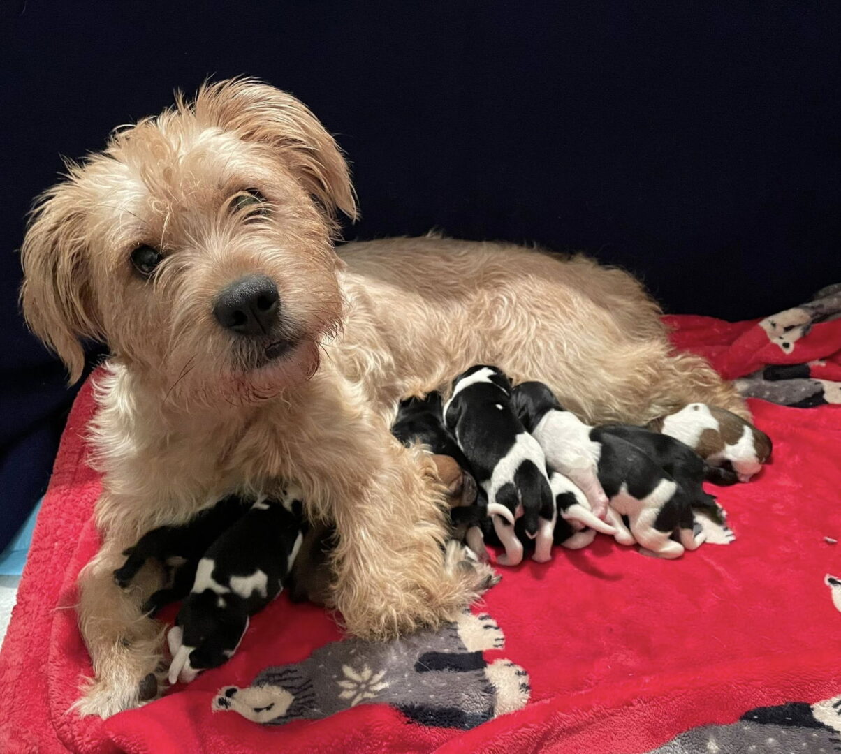 Hi I’m 2 year old Terrier mix – Sage (I’m bigger than I look… I weigh 35 lbs) I came to GRASP around lunchtime one day and by dinner I was having my babies! Foster mom wondered if I was in labor or just nervous… but I ate lunch and dinner like i hadn’t eaten in a week so she was convinced I wasn’t in labor- SURPRISE, 10 beautiful babies I very quickly fell in love with my foster family, figured out how things work around the house, relaxed into being an amazing mom, found all the toy boxes in the house ( I LOVE toys!!), found the best spots to nap, and made friends with my foster fur siblings… I even allowed one of my foster fur sisters to become an auntie to my crew. I’m house trained, crate trained, a snuggle bug, I love going for walks, and I love to play with my toys! Being a mom was great… for a hot minute…but I’m SO glad to have my life back! Although I currently lives with dogs of all sizes and ages, I would do just fine as an only dog! Does Sage sound like a perfect addition to your home? Applying is the first step to meet her – APPLICATION (See our Dog Adoption FAQs before applying)