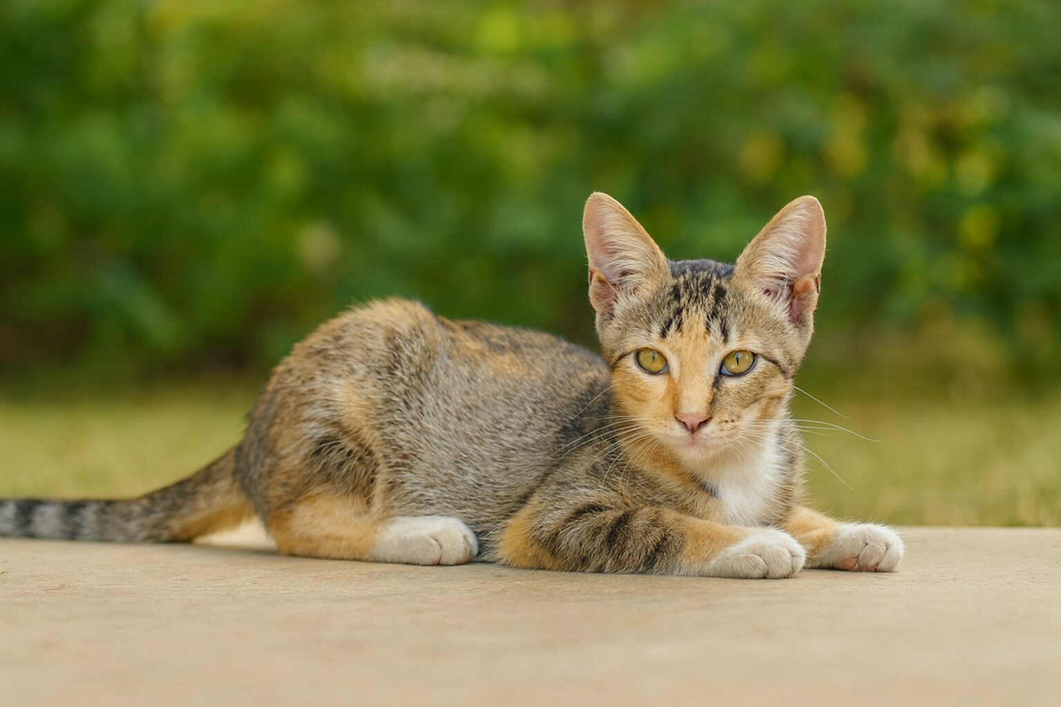 Saint is a stunning little caliby kitten with a coat that’s truly a work of art—swirls of orange, grey, black, and white, some ticked, some striped, all beautiful. She even wears the classic mark of the Madonna on her sweet face. This curious and playful girl is always contemplating her next adventure, and you can practically see the intelligence shining in her eyes. Saint adores ear rubs and back scratches, and when playtime is over, she’s happy to settle in for some affection. Female caliby kitten Indoor only Declawing prohibited by contract Must be at least 21 to adopt If you’re looking for a bright, affectionate kitten who’s equal parts beauty and brains, Saint is ready to bless your home with love.