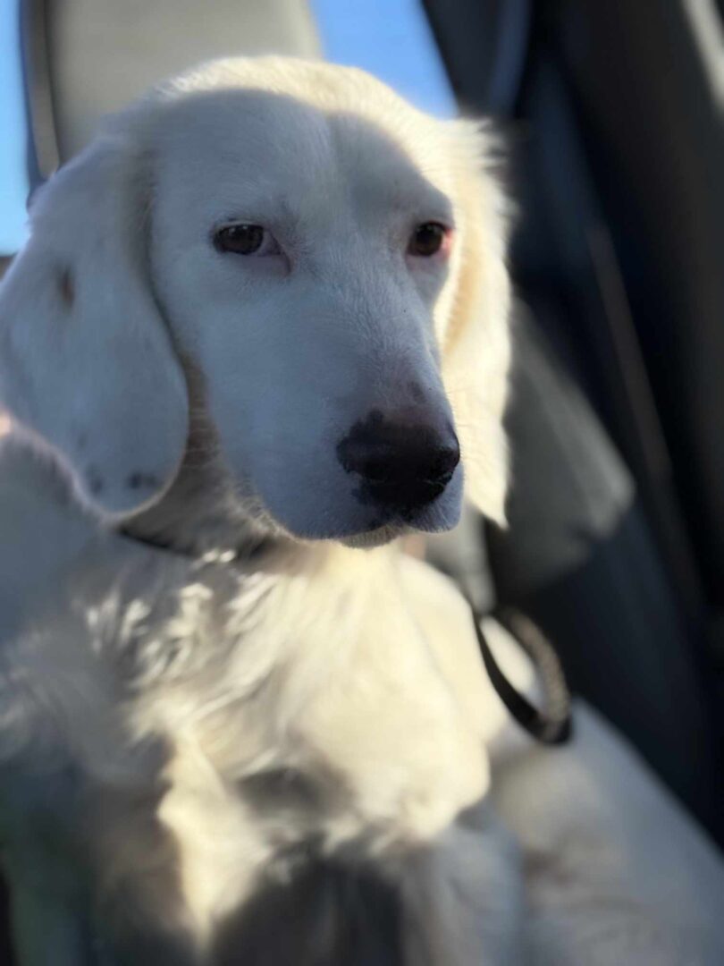 Introducing Sally, one of the sweetest English Setter girls you will ever meet. Sally is just shy of 2 years young and was surrendered to SWESR due to lack of prey drive. She has a gentle, soulful personality and a heart full of quiet sweetness. Since arriving in foster care, she has shown herself to be an easy, well-mannered companion— house-trained with excellent indoor behavior, no destructive tendencies and no storm or separation anxiety. She walks nicely on leash, loves going on walks, rides calmly in the car, and gets along beautifully with the resident English Setters and dogs she meets on walks. She has not lived with cats. Sally is also affectionate with people, including respectful of older children, and enjoys snuggling. While she has a playful side, she is currently on the lower-energy end for her breed, making her an appealing option for those seeking a young setter that is calmer. Sally is still building confidence and can be quite timid, especially indoors. Everyday household noises like running water or sudden sounds can startle her, and she tends to retreat to a safe, quiet space when overwhelmed. This shy girl appreciates her own “safe” places to retreat and relax, the first spot she chose in her foster home was her foster parents bed. Furniture privileges and “safe spots” that Sally chooses in her forever home are a must for Sally. She will need a patient and understanding adopter who can give her the time and reassurance she needs to fully come out of her shell. Positive reinforcement, a predictable routine, and a low-noise environment will help her continue to blossom. Sally lucked into the perfect foster home where someone is almost always home. She currently lives with two very dog savvy kids, ages 7 and 9 and two other English Setters, both male, along with her foster mom and dad. Although Sally does well with the kids she is stressed with all of the noise and busyness of them and would do best with older teenagers or no children. She will need a very patient adopter who is willing to give her time to settle into a new home and environment and kindly continue to teach her that life isn't always scary and love does exist. Sally is spayed and up to date on vaccinations and tests. Sally’s ideal home is calm, has a securely fenced and Setter interesting yard, and has another friendly, confident dog to help guide her. Sally clearly enjoys canine companionship. She prefers that her people and/or her fur-siblings go outside with her. She does get excited when she sees squirrels in her yard and will chase them with the other English Setters. She is suitable for families with older, dog-savvy children (7+ years) but may be uncomfortable in a busy or chaotic household. With patience and love, Sally has all the makings of a deeply loyal, affectionate companion who will reward her adopter with trust, devotion, and a truly special bond. Sally is pretty perfect for someone who is home a lot and willing to give her the love and patience she did not get before rescue.