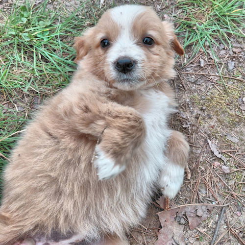 Sandy is a female tan-and-white border collie/lab/bulldog mix, born on February 13, 2026. Sandy has long, cottony hair. She is a tan color with pretty a white blaze on her face and white mitten feet. Sandy is very lovable, a little snuggle bug. Sandy had her first vaccine and deworming on April 2. She will be due her second vaccine on April 22. Sandy can be adopted locally right away, but she cannot travel out of state until April 24, after her second vaccine. She can be pre-adopted, but adopters will have to wait for her. The adoption fee is $325. This covers the cost of spay/neuter, DHPP, Rabies, Flea, tick, heart worm check, worm treatment, and microchip. To adopt, you need to first fill out an application. Go to: https://rutherfordcountyhumanesociety.org/dog-adoption-application/ We are located in Western North Carolina. Optional transport is weekly. After your application is approved, we will contact you regarding cost and delivery if you so desire.