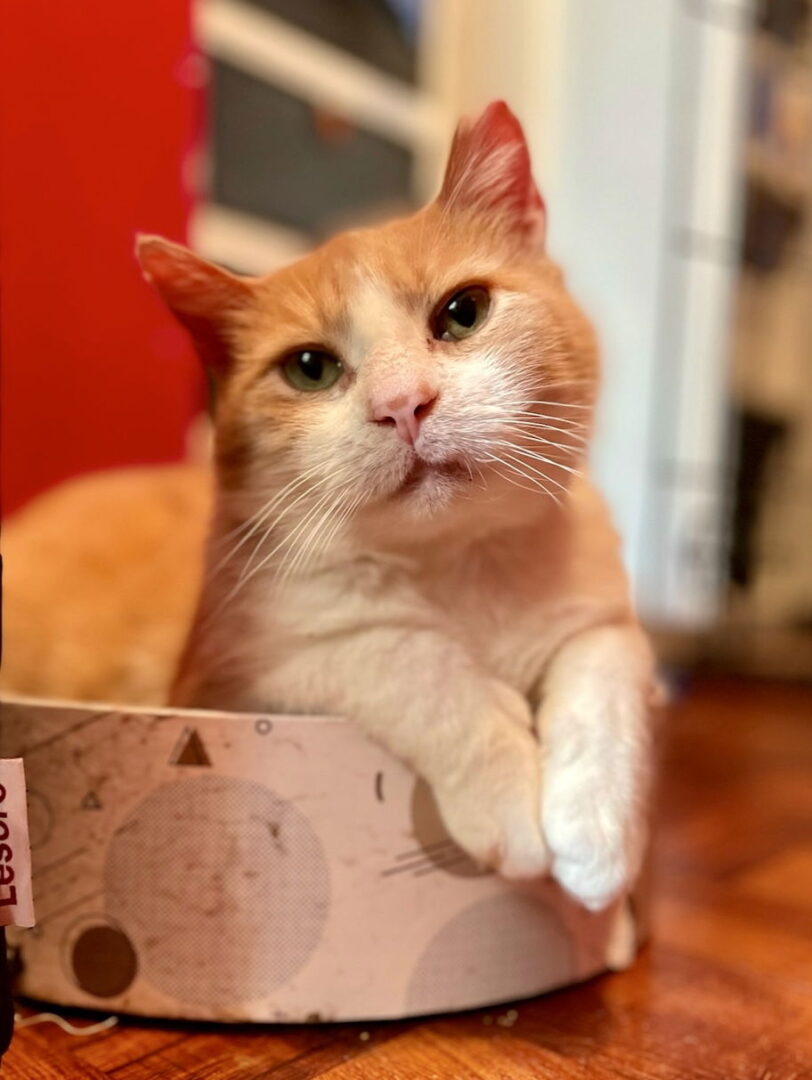 Sanford is a local legend, and we're so excited to finally put him up for adoption! He's a hilarious and opinionated boy, who LOVES treats, body rubs, and other cats. He also has the cutest head tilt — it's not a medical concern, just a charming trait. Sanford spends his day lounging and observing; he's a chill guy who's just looking for a comfortable home and ideally a cat buddy. Sanford's story is as unique as he is: He lived the first few years of his life in a basement with a building super in East New York. A year ago, we found him wandering the streets of Crown Heights in bad shape. How Sanford made his long journey to a different part of Brooklyn…we will never know. But it was clear he needed help. We got him back into good shape and socialized him into the funniest house cat. Along the way, many people on the internet fell in love with him. Sanford is neutered, up to date on vaccines, free of fleas and parasites, and negative for FIV/FeLV. At 8 years old and in great health, Sanford has many good years ahead! Not only does he love other cats, he also really liked his foster dog brothers. He might be a bit shy at first, but he'll warm up quickly with pets and treats. If you're interested in meeting Sanford, please go to our application here: https://brooklynanimalaction.org/adoption-forms/. Make sure you mention Sanford, then identify SUSE as the rescuer and fill out the form! Thank you for thinking of a rescued angel! Every dime goes to save another homeless kitty on the street.