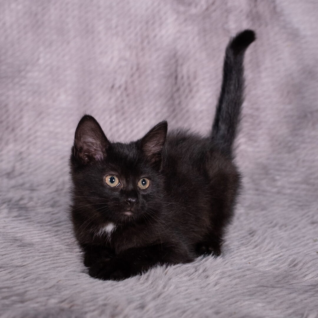Please contact Andrea (andrea@focusonthedetails.com) for more information about this pet.Application is required – Please go to www.ppnk.orgAdoption fee $150 (or two for $275)This little fleet was found orphaned at about 3.5 weeks old – adorable fluffballs needing to nurse just a bit longer before they could wean to solid food. The gorgeous little calico-tabby girl was named Nina after the Good Samaritan who found them, and then a play on the names of the Spanish fleet of ships was born – so the fluffy black and white boy became Pinto, and the black fluffy girl became Santa Maria. These three are super playful, fearless, social, AND snuggly. Santa Maria loves to play with her siblings, and also is a notable snuggler with people. We LOVE seeing our babies adopted in pairs… having a familiar sibling/buddy helps ease their transition to a new home, and gives them a constant companion for life. For more great reasons to adopt a pair, visit http://www.kittenlady.org/twokittens. Can one or two of these little explorers sail into your home? Apply at http://www.ppnk.org. Photo credit: Emily R (Click the main photo for more photos of Santa Maria)All our animals receive professional veterinary attention including spay/neuter, testing, vaccination, deworming, food and shelter. We only rescue from Animal Control and cannot accept lost, hurt or unwanted pets from individuals. We are a licensed non-profit no-kill shelter.