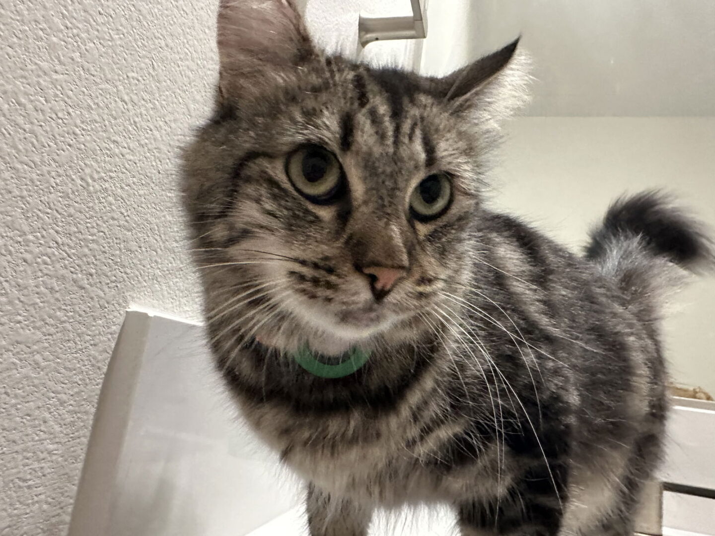 I am currently available for adoption at the Rancho Santa Margarita Petsmart. If you’re interested in adopting me, fill out an application on our website www.carmaoc.org Hi! I’m Santa Monica and I am a mom of three kittens and I’m also a little baby myself. I’m a long tabby with a fluffy tail and beautiful brown eyes. I love to follow my humans around the house and sleep next to them. I am a very gentle cat so young children are safe around me. I enjoy being petted and held in your lap. My adoption fee is $175. That includes spay/neuter, microchip, FIV/FeLV combo test, current vaccines and health check.