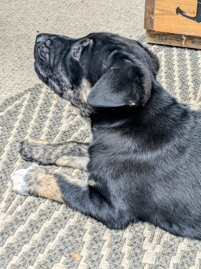 Hi, im Santos. The grandchildren call me Squishy. I love my sibs. My foster has 4 dogs we love to play with. In fact, I would do well in a home with another dog. I sleep in a crate with my sibs and ride well in the car unless Foster swerves. I will be at the next adoption event so please come by and meet all of us. Any questions, let me know!