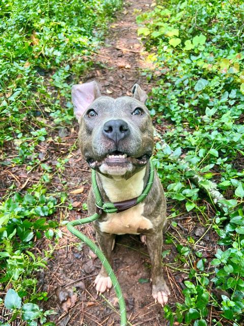 Please contact foster at straightfromheartsdb@gmail.com-Dog friendly -Cat friendly! -Kid friendly -Crate trained-Velcro girl who loves being with her people -High energy + loves other playful dogs -Loves toys -Knows sit -Treat + food motivated -Walks well on leash -Very fun + playful energy + personality -Takes treats nicely -Unique gray + brown brindle coat
