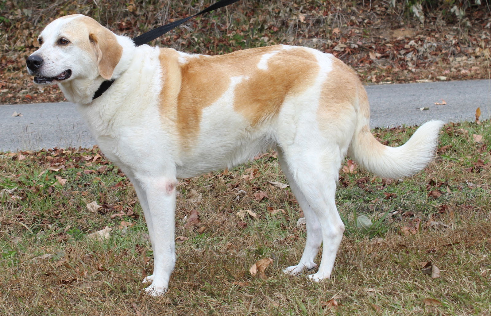 Sara is a 6-year-old female Lab/Great Pyrenees who has already been spayed. She was adopted from a rescue in another state; and her owner could no longer keep her. Sara is white with tan markings; and she weighs 61 pounds. This beautiful dog has no idea why she is at the shelter; and she is tugging at our heartstrings. Sara is house trained, leash trained, and very well behaved. She is NOT good with cats; and would do best in a home without small children. Sara is just a great big, calm, sweetheart! She needs a new start on life and would make an excellent dog for someone who needs a devoted companion and loyal friend.Dog/puppy adoption fees are $100. Cat/kitten adoption fees are $50.