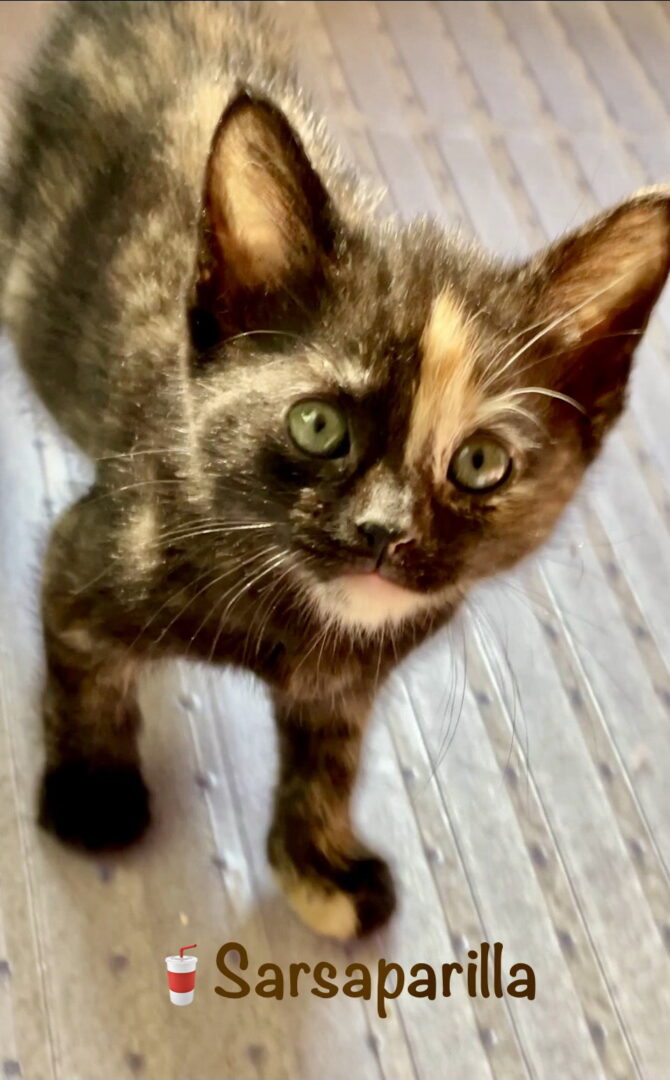 See Sarsaparilla’s HomepageGo to our official websiteSarsaparilla is a tiny kitten with a big tortie personality. This petite tortie is full of playful energy and sweetness, always keeping up with her Soda Pop siblings despite her small size. Sarsaparilla loves to “talk” to you when she wants attention or is ready for a meal, and it’s absolutely adorable. Her little voice and expressive personality make it easy to know exactly what she’s thinking. She’s affectionate, engaging, and full of charm, with that perfect blend of tortie sass and sweetness. When she’s not chatting with you, she’s playing, exploring, or settling in for some well-earned love. If you’re looking for a kitten with personality and a voice to match, Sarsaparilla is ready to steal your heart. sarsaparilla will be 8 weeks old and ready for adoption on May 15th! Interested in this Little Buddy? For the fastest response, please call our Adoption Coordinator at 703-431-5931 and leave a voicemail with your name, number and name(s) of the Little Buddy(s) you are interested in learning more about. Our Adoption Coordinator will return your call in 24-48 hours. Calls will be returned in the order they are received. Please only call once and remember to leave a detailed voicemail. Our adoption fee is $190 for a cat or kitten. This includes spay/neuter, microchipping, combo testing, age-appropriate vaccinations, deworming, flea treatment and any necessary medical care prior to adoption.