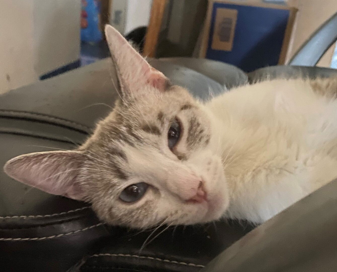 I am Sasha. Took me a bit to adjust to being in a foster home but my foster parents gave me much needed time. I can still be extremely shy with strangers and can take days, even weeks to warm up to you. Once I really warm up to you – I can be lovable and sweet. I might follow you from room to room, sleep on your pillow or next to you. I might even sit in your lap. However, I am not an in your face 24/7 type kitty, and sometimes want nothing to do with you. I can be finicky in my affection towards you. I do not destroy things. I prefer to lounge around, snooze, eat and just be home. Toys/Accessories – I love cubbies to sleep in, cat trees to climb. Toys can be hit or miss but catnip filled toys and coils so far are my favorites. Love to play and snooze in the tub. My foster mom says make sure there is nothing in the bottom half of the tub/shower or it may be fair game to my awesomeness. Food – I am finicky about can food. I do enjoy access to my dry food 24/7. As a Siamese mix, that is important to have. Dogs – No dogs. I am not fond of dogs, no matter what my humans try. I will hide permanently if a dog is loose in my area. My humans keep trying but I am not budging. Other Cats – Please do not inquire about me as a companion for your cat as I am cat selective. And really do NOT like other cats at this point. Love my humans though. Kids – Am unsure of kids at this moment but not comfortable in chaotic noisy areas. Allergies – I am a Siamese Snowshoe Mix. I am NOT hypoallergenic and I will trigger allergies in anyone who is allergic to cats. I am spayed, vaccinated, chipped and tested. My estimated birthdate is 9/1/2021 and my adoption fee is $140.