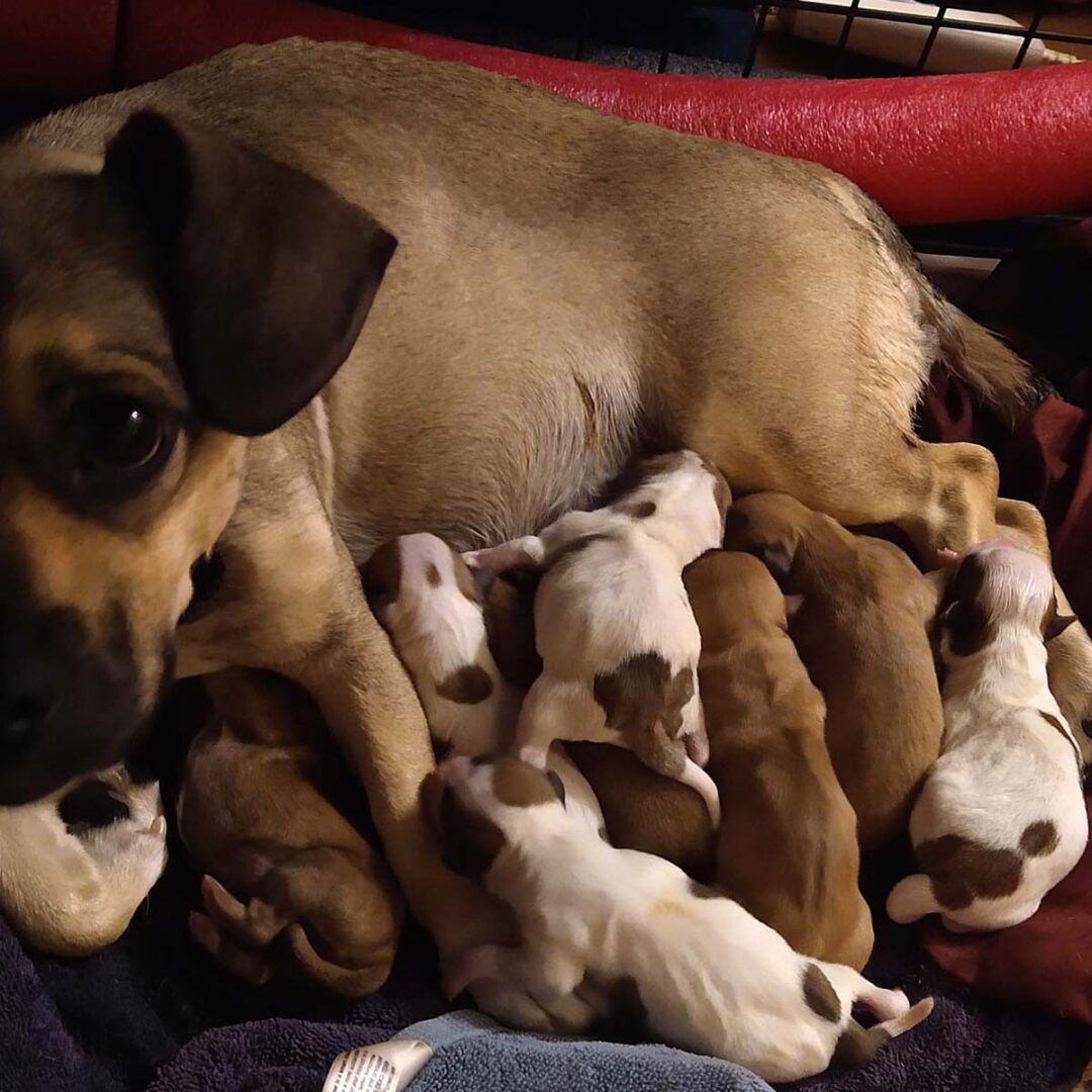 Sasha welcomed 10 pups on 12/11/2024. Wow! They will be available for adoption at 8 weeks of age.Accuracy is not guaranteed; however, information provided is accurate to the best of our knowledge.  For more information on the pet, please send an email to info@aforeverhome.org