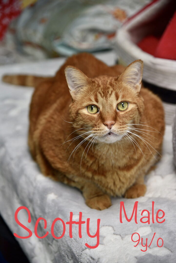 See Scotty’s HomepageGo to our official websiteYou can fill out an adoption application online on our official website.Scotty and his brother, Mac, are owner surrenders. They are brothers but not bonded, so they can either be adopted alone or together. They are currently nearly 9 years old and were loved since kittens, but their owner had become highly allergic and could no longer keep them. We are still getting to know them, but as they have begun to acclimate to their new environment, they are warming up to our volunteers and their lovely personalities are emerging. Scotty is the outgoing one and has blossomed in our free roaming cat room. He just loves to be loved on! If you are interested in meeting Scotty and/or Mac, please complete an application at save.rescuegroups.org