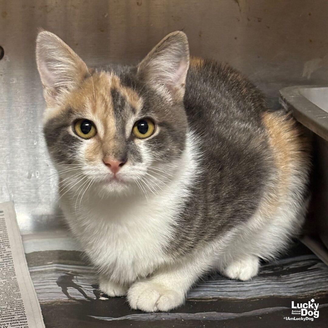 Please contact Jessie Cheng (jessie.cheng@luckydoganimalrescue.org) for more information about this pet.Cute Kitten In Search of A Forever Home!SEENA NEEDS A FOREVER HOME! COME MEET SEENA AND OTHER GREAT ADOPTABLE CATS ON SUNDAY 12/7 FROM 12PM-3PM AT THE PETSMART IN POTOMAC YARDS (3351 RICHMOND HIGHWAY, ALEXANDRIA, VA)! Name: Seena Best Guess for Breed: Domestic Short Hair Age: 3 months as of 11/19/25 Estimated DOB: 8/8/25 SEX: Female Approximate Weight: 3.2 lbs as of 11/19/25 Coloring: Dilute Calico Type of Hair: Short Gets Along With: Because of her young age, Seena will likely get along with other cats, dogs and kids with an acclimation period. We’re happy to help with tips and tricks!Lives With: Selma & Seena Currently Living at: Foster in the DC Area I am Looking For: My loving forever family! Hi! I’m Seena, and I am a cute little kitten! I won’t ask for much- just some love, cuddles and lots of toys so I can run and play and be my kitten self. Two kittens are better than one – consider adopting my super cute sibling, too! What my Foster Says About Me: Coming soon! Kitten Vetting Requirements: Your kitten may not be fully vaccinated upon adoption. You will be responsible for providing whatever remaining vaccines are needed to complete the kitten vaccine series. TO ADOPT: The adoption fee for adult cats is $200 ($350 for two cats adopted together). The adoption fee for a kitten (under 7 months old) is $220 ($380 for two kittens adopted together).If you are interested in adopting, please complete the Adoption Questionnaire online at bit.ly/adoptaluckycat. Lucky Dog Animal Rescue does our best to provide accurate information about the cats we have for adoption. That said, we cannot make any guarantees about age, breed or temperament. Thank you for contacting Lucky Dog Animal Rescue and helping to save a life! Please visit us online at www.luckydoganimalrescue.org . BE A FOSTER!!! Fosters make it possible for Lucky Dog Animal Rescue to save and care for homeless and abandoned dogs! To learn about fostering, please contact fostering@luckydoganimalrescue.org BE A SPONSOR!!!! Sponsors help Lucky Dog support the many dogs we save. To learn more about sponsorship, please contact info@luckydoganimalrescue.org !