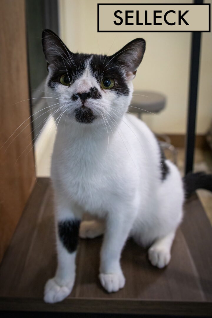 Meet Selleck!This handsome gentleman with his suave black-and-white coat and unmistakable facial markings instantly reminded us of none other than Tom Selleck himself—so the name stuck! We first spotted Selleck during a short drive just a block away from our destination. Several cats were crossing the street, prompting us to pull over and investigate. After chatting with some neighbors, we were able to safely bring them all to the clinic for care. Selleck immediately stood out—not just because of his movie-star looks, but because of his gentle, affectionate nature. From the moment he arrived, Selleck was rolling over, showing us his belly, and happily accepting pets. He devoured his food like a true connoisseur of comfort, letting us know he was ready for a better life. Selleck has shown us he’s more than just a pretty face—he’s a loving, social, and playful boy who’s left his street days behind and is ready for a forever home where he can keep charming hearts and soaking up the love. In one picture you can see Selleck stretched out relaxing on the floor next to his fellow black and white buddy Omega (FCID#09/08/2025-36). In another photo, he is spending time in the window with Moonlight (FCID# 08/09/2025 – 4). Selleck spent some time with a foster family. He and their four cats loved one another. They chased one another , did ‘zoomies’ and looked out windows. Selleck loved following his foster mom around the house. Selleck is hoping for his forever family soon. Could it be YOU? Please check out Selleck’s short video: https://www.youtube.com/watch?v=mOl12mOp3rE&t=1s . Selleck is now playing in our Brookhaven PetSmart adoption center. Please ask to spend some time with him! Selleck would love to be in a home environment. Please submit our no-obligation Adoption Application for a meet and greet or to adopt: https://forgottencats.org/adoption-application/. Thank you! (Foster: Deborah C./Trainer)