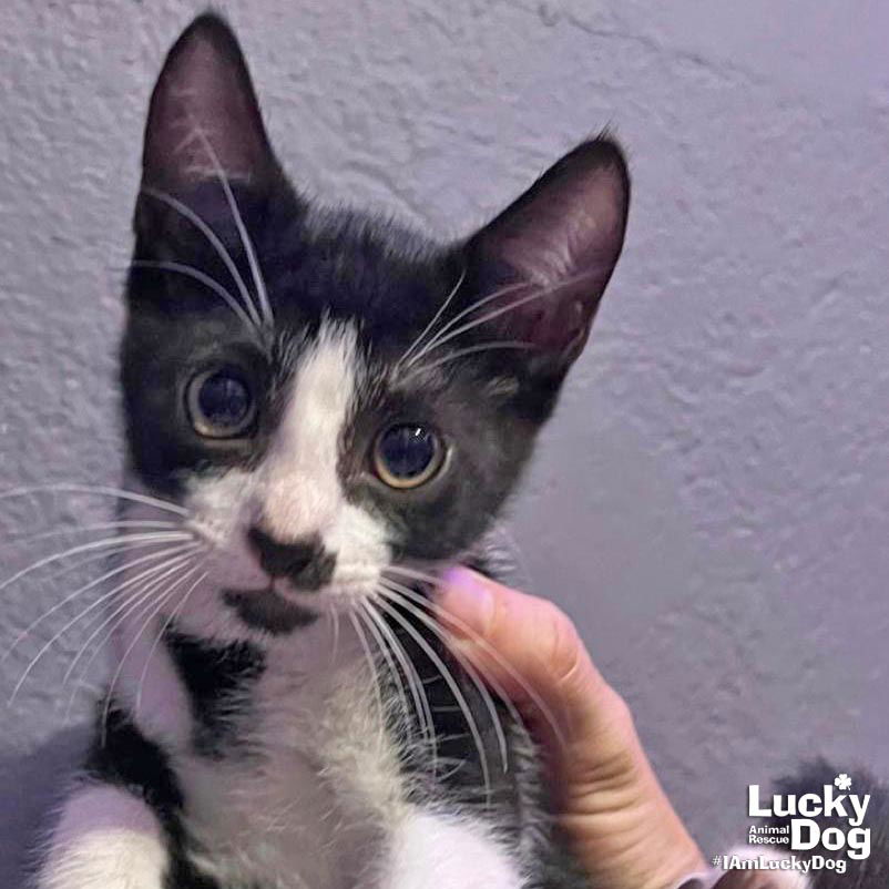 Please contact Mollie Gorney (mollieg@luckydoganimalrescue.org) for more information about this pet.Handsome kitten needs a forever home!SENOR DALLAS NEEDS A FOREVER HOME! COME MEET SENOR DALLAS AND OTHER GREAT ADOPTABLE CATS ON SUNDAY 6/15 FROM 12PM-3PM AT THE PETSMART IN FALLS CHURCH (6100 ARLINGTON BLVD, FALLS CHURCH, VA)! Name: Senor Dallas Best Guess for Breed: Domestic Short Hair Age: 13 weeks as of 6/3 Estimated DOB: 3/4/25 SEX: Male Approximate Weight: 2.5 lbs a/o 6/3 Coloring: Black and White Type of Hair: Short Gets Along With: Because of his young age, Senor Dallas will likely get along with other cats, dogs and kids with an acclimation period. We’re happy to help with tips and tricks!Litter: Senorita Cherry, Senorita Ginger, Senor Ace, Senor Dallas, Senorita Tiffany, Senorita Trixie Currently Living at: Shelter – coming to the DC area soon! I am Looking For: My loving forever family! Hi! I’m Senor Dallas, and I am a cute little kitten! I won’t ask for much- just some love, cuddles and lots of toys so I can run and play and be my kitten self. Two kittens are better than one – consider adopting one of my super cute siblings too! What my Foster Says About Me: Coming soon! Kitten Vetting Requirements: Your kitten may not be fully vaccinated upon adoption. You will be responsible for providing whatever remaining vaccines are needed to complete the kitten vaccine series. Due to this kitten’s young age, she/he has not yet been spayed or neutered. As part of the adoption contract, it will be your responsibility, as the adopter, to ensure that this is done no later than 9/4/25. There are NO EXCEPTIONS and NO EXTENSIONS to this date. A non-refundable spay/neuter deposit will be collected if you would like Lucky Dog to pay for this animal to be spayed/neutered at one of our low-cost partner vets. TO ADOPT: The adoption fee for adult cats is $200 ($350 for two cats adopted together). The adoption fee for a kitten (under 7 months old) is $220 ($380 for two kittens adopted together).If you are interested in adopting, please complete the Adoption Questionnaire online at bit.ly/adoptaluckycat. Lucky Dog Animal Rescue does our best to provide accurate information about the cats we have for adoption. That said, we cannot make any guarantees about age, breed or temperament. Thank you for contacting Lucky Dog Animal Rescue and helping to save a life! Please visit us online at www.luckydoganimalrescue.org . BE A FOSTER!!! Fosters make it possible for Lucky Dog Animal Rescue to save and care for homeless and abandoned dogs! To learn about fostering, please contact fostering@luckydoganimalrescue.org BE A SPONSOR!!!! Sponsors help Lucky Dog support the many dogs we save. To learn more about sponsorship, please contact info@luckydoganimalrescue.org !