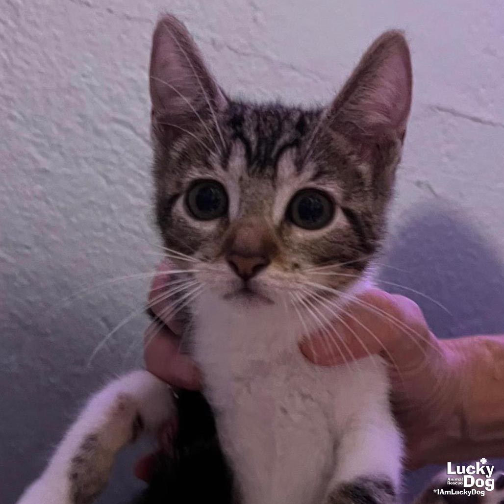 Please contact Mollie Gorney (mollieg@luckydoganimalrescue.org) for more information about this pet.Pretty kitten needs a forever home!SENORITA CHERRY NEEDS A FOREVER HOME! COME MEET SENORITA CHERRY AND OTHER GREAT ADOPTABLE CATS ON SUNDAY 6/15 FROM 12PM-3PM AT THE PETSMART IN FALLS CHURCH (6100 ARLINGTON BLVD, FALLS CHURCH, VA)! Name: Senorita Cherry Best Guess for Breed: Domestic Short Hair Age: 13 weeks as of 6/3 Estimated DOB: 3/4/25 SEX: Female Approximate Weight: 2.2 lbs a/o 6/3 Coloring: Brown Tabby Type of Hair: Short Gets Along With: Because of her young age, Senorita Cherry will likely get along with other cats, dogs and kids with an acclimation period. We’re happy to help with tips and tricks!Litter: Senorita Cherry, Senorita Ginger, Senor Ace, Senor Dallas, Senorita Tiffany, Senorita Trixie Currently Living at: Shelter – coming to the DC area soon! I am Looking For: My loving forever family! Hi! I’m Senorita Cherry, and I am a cute little kitten! I won’t ask for much- just some love, cuddles and lots of toys so I can run and play and be my kitten self. Two kittens are better than one – consider adopting one of my super cute siblings too! What my Foster Says About Me: Coming soon! Kitten Vetting Requirements: Your kitten may not be fully vaccinated upon adoption. You will be responsible for providing whatever remaining vaccines are needed to complete the kitten vaccine series. Due to this kitten’s young age, she/he has not yet been spayed or neutered. As part of the adoption contract, it will be your responsibility, as the adopter, to ensure that this is done no later than 9/4/25. There are NO EXCEPTIONS and NO EXTENSIONS to this date. A non-refundable spay/neuter deposit will be collected if you would like Lucky Dog to pay for this animal to be spayed/neutered at one of our low-cost partner vets. TO ADOPT: The adoption fee for adult cats is $200 ($350 for two cats adopted together). The adoption fee for a kitten (under 7 months old) is $220 ($380 for two kittens adopted together).If you are interested in adopting, please complete the Adoption Questionnaire online at bit.ly/adoptaluckycat. Lucky Dog Animal Rescue does our best to provide accurate information about the cats we have for adoption. That said, we cannot make any guarantees about age, breed or temperament. Thank you for contacting Lucky Dog Animal Rescue and helping to save a life! Please visit us online at www.luckydoganimalrescue.org . BE A FOSTER!!! Fosters make it possible for Lucky Dog Animal Rescue to save and care for homeless and abandoned dogs! To learn about fostering, please contact fostering@luckydoganimalrescue.org BE A SPONSOR!!!! Sponsors help Lucky Dog support the many dogs we save. To learn more about sponsorship, please contact info@luckydoganimalrescue.org !