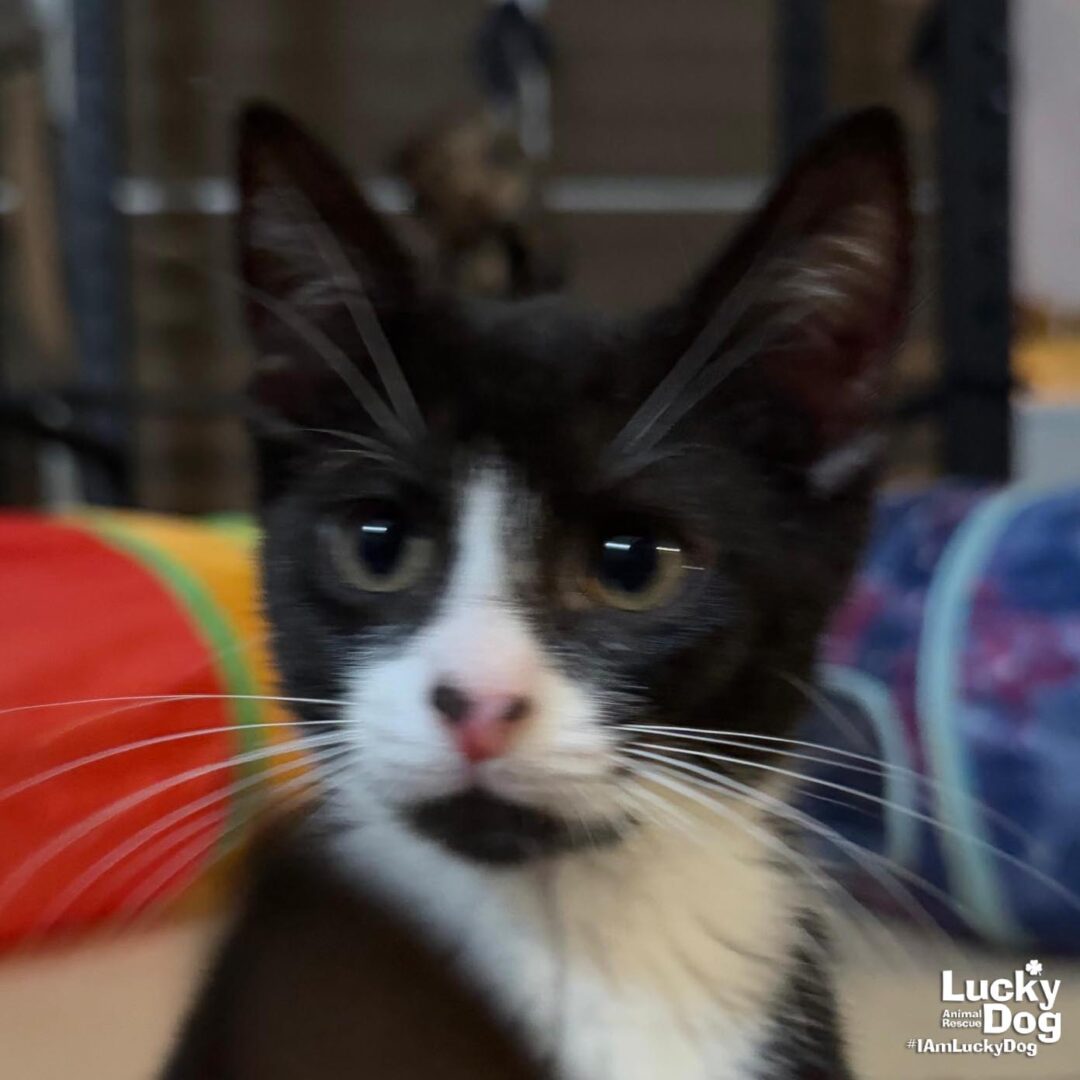 Please contact Mollie Gorney (mollieg@luckydoganimalrescue.org) for more information about this pet.Pretty kitten needs a forever home!SENORITA TIFFANY NEEDS A FOREVER HOME! COME MEET SENORITA TIFFANY AND OTHER GREAT ADOPTABLE CATS ON SUNDAY 6/15 FROM 12PM-3PM AT THE PETSMART IN FALLS CHURCH (6100 ARLINGTON BLVD, FALLS CHURCH, VA)! Name: Senorita Tiffany Best Guess for Breed: Domestic Short Hair Age: 13 weeks as of 6/3 Estimated DOB: 3/4/25 SEX: Female Approximate Weight: 2.2 lbs a/o 6/3 Coloring: Black and White Type of Hair: Short Gets Along With: Because of her young age, Senorita Tiffany will likely get along with other cats, dogs and kids with an acclimation period. We’re happy to help with tips and tricks!Litter: Senorita Cherry, Senorita Ginger, Senor Ace, Senor Dallas, Senorita Tiffany, Senorita Trixie Currently Living at: Shelter – coming to the DC area soon! I am Looking For: My loving forever family! Hi! I’m Senorita Tiffany, and I am a cute little kitten! I won’t ask for much- just some love, cuddles and lots of toys so I can run and play and be my kitten self. Two kittens are better than one – consider adopting one of my super cute siblings too! What my Foster Says About Me: Coming soon! Kitten Vetting Requirements: Your kitten may not be fully vaccinated upon adoption. You will be responsible for providing whatever remaining vaccines are needed to complete the kitten vaccine series. Due to this kitten’s young age, she/he has not yet been spayed or neutered. As part of the adoption contract, it will be your responsibility, as the adopter, to ensure that this is done no later than 9/4/25. There are NO EXCEPTIONS and NO EXTENSIONS to this date. A non-refundable spay/neuter deposit will be collected if you would like Lucky Dog to pay for this animal to be spayed/neutered at one of our low-cost partner vets. TO ADOPT: The adoption fee for adult cats is $200 ($350 for two cats adopted together). The adoption fee for a kitten (under 7 months old) is $220 ($380 for two kittens adopted together).If you are interested in adopting, please complete the Adoption Questionnaire online at bit.ly/adoptaluckycat. Lucky Dog Animal Rescue does our best to provide accurate information about the cats we have for adoption. That said, we cannot make any guarantees about age, breed or temperament. Thank you for contacting Lucky Dog Animal Rescue and helping to save a life! Please visit us online at www.luckydoganimalrescue.org . BE A FOSTER!!! Fosters make it possible for Lucky Dog Animal Rescue to save and care for homeless and abandoned dogs! To learn about fostering, please contact fostering@luckydoganimalrescue.org BE A SPONSOR!!!! Sponsors help Lucky Dog support the many dogs we save. To learn more about sponsorship, please contact info@luckydoganimalrescue.org !