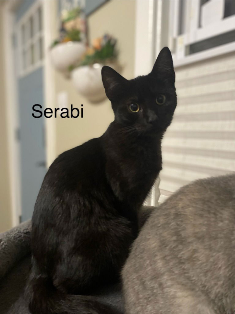 Serabi is a stunningly beautiful sleek black girl who is about 5 months old now. She is the last of her litter – unfortunately all of her siblings were siamese like so she wasn’t as desirable. :(