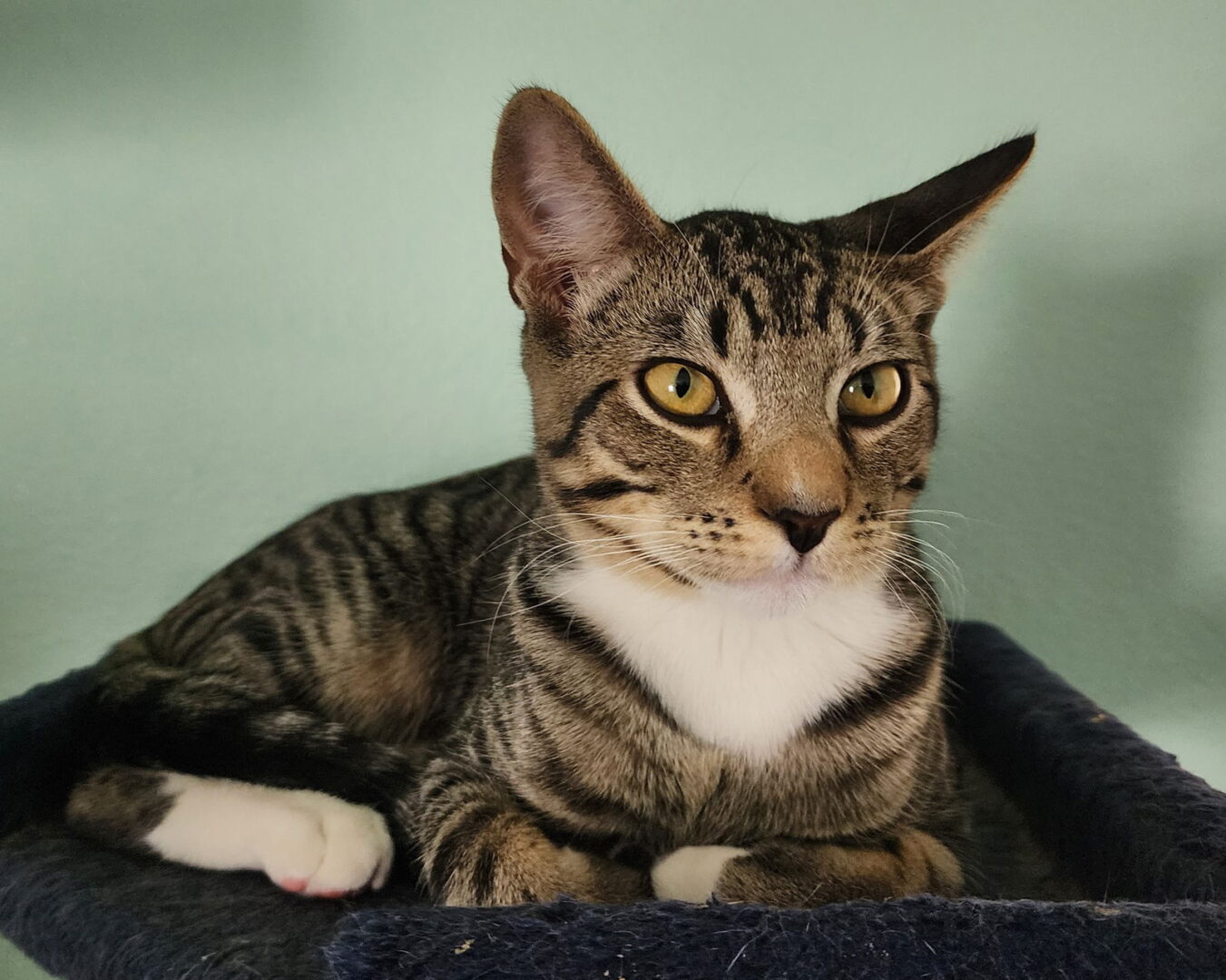 I am currently available for adoption from my foster home. If you’re interested in adopting me, fill out an application on our website www.carmaoc.org Hi! My name is Sergio Valente and I am a high energy, very curious kitten. I like to follow people around and get into any closet, door, drawer or other things I can. I play hard with toys. Once I’m tired out, I like to snuggle next to people. I have a silly habit of walking over people a few times to get pets. I have been fostered with other cats and a dog. The cats are okay, but the rambunctious dog is a bit intimidating. I do like to watch him. My adoption fee is $175. That includes spay/neuter, microchip, FIV/FeLV combo test, current vaccines and health check.