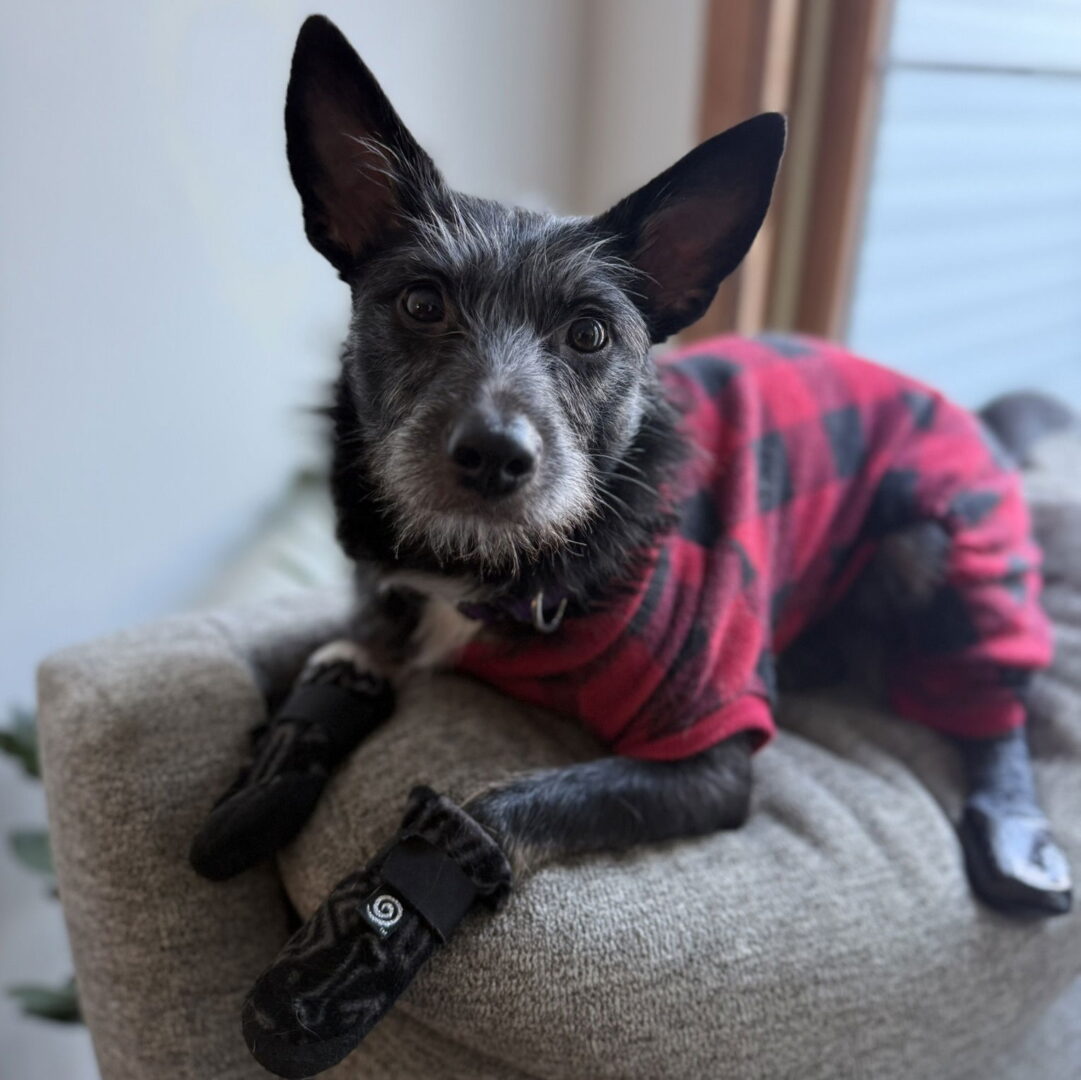 See Shadow’s HomepageGo to our official website When she arrived malnourished with two puppies, she gave everything she had to be the perfect mama. Six months later, her puppies are adopted, she is healthy, happy, and ready for a fresh start of her own. Shadow is a beautiful 25 pound terrier mix with a sleek black coat, perky ears, a white belly, one speckled paw and one white paw, and a personality that melts hearts. She is goofy, sweet, playful, cuddly, and deeply devoted. She will follow you like your shadow, but when she is content she will happily snooze on the couch, snoring loudly and missing bedtime altogether because she is too cozy. She is fully potty trained, loves sleeping in bed with her people and dog friends, enjoys long walks in quiet places, sunbathing with her ball, and car rides that mean adventure. She eats dinner politely in her kennel and waits patiently, hoping you will notice her being precious. Shadow is protective of her people in new environments, gentle with those she trusts, and shows affection by resting her head on your shoulder or adorably pawing at your face when she likes you. She does best with dogs her size and older kids. She is searching for someone who wants a true bond, not just a pet, but a partner in life. If you are ready for a loyal, loving companion who will give you her whole heart, Shadow is waiting. Adoption fee includes: Full veterinary exam, Alter, Prepaid microchip, Dewormed, Rabies vaccine (if age appropriate), Distemper combo vaccine(s) appropriate to age, Bordetella vaccine, 4DX (over 6 months of age), Dental, Flea/tick and heartworm preventative while in rescue. Adoption fee: $550.00