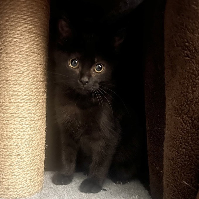 Meet Shadow! Shadow is a true little Void—sleek, dark, and often found quietly blending into the background as she observes the world from her favorite hiding spots. True to her name, she’s shy and a bit afraid of her own shadow, but that gentle, cautious nature is exactly what makes her so special.Shadow was one of the last kittens rescued from an abandoned house that had sadly become a garbage dumping ground. Because of her rough start, she needs extra love, patience, and understanding—but she’s absolutely worth it. In her ideal home, Shadow needs a calm and quiet environment where she has time to decompress and slowly come out of her shell. Despite her shyness, Shadow could do well with kids, especially ones who understand the importance of being gentle and giving her space. Shadow will need another feline friend in her forever home. If you are looking for a dynamic duo, she would love to be adopted with one of her siblings Midnight or Toothless.Once she feels secure, her sweet nature shines through in subtle but meaningful ways. With patience, she will let you sit with her and gently pet her, especially if treats are involved (treats are the fastest way to her heart!). She enjoys teaser toys from a comfortable distance and loves to quietly watch the action rather than be in the middle of it.Shadow will be the kitty who quietly chooses you, trusting you enough to let you into her world. If you have a peaceful home and a big heart for a shy girl who needs time, Shadow is ready to begin her brighter future with you.WE DO NOT HAVE A PHYSICAL LOCATION AS WE ARE A FOSTER-BASED ORGANIZATION. PLEASE SUBMIT AN APPLICATION TO BE IMMEDIATELY CONNECTED TO A SCREENER.Apply at online application (catsfff.org/adopt)View all of our adoptable cats here (catsfff.org/cats)Our adoption fees are listed here (catsfff.org/adoption-fees)