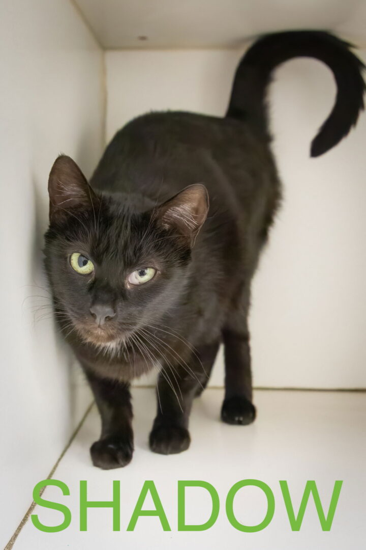 This young girl is Shadow. She has mild CH. From the internet: ‘Cerebellar hypoplasia (CH) is a neurological disorder that affects a cat’s balance, coordination, and fine motor skills. It’s also known as wobbly cat syndrome. CH is caused by improper development of the cerebellum, the part of the brain that controls these functions. CH is non-progressive, meaning it doesn’t worsen with age, and it’s neither contagious nor painful. There’s no known treatment for CH, but many cats can adapt to their condition over time. Physical therapy may also help. CH severity Symptoms Mild Slight head tremors, wide stance, but can still run, jump, walk, and climb Shadow would love to be in a home environment. Please submit our no-obligation Adoption Application to meet and greet or to adopt: https://forgottencats.org/adoption-application/. Not ready to adopt? Please consider fostering: https://forgottencats.org/foster-a-cat/. Thank you! (Foster: Trainer)