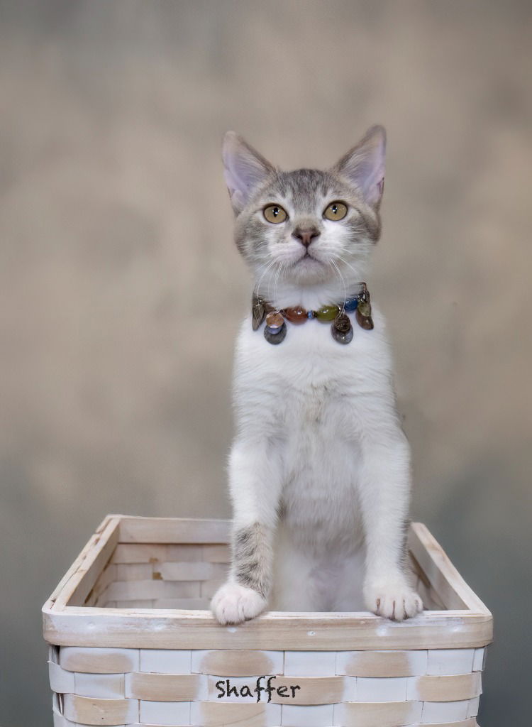 Meet Shaffer! Shaffer is one of the four darling kittens discovered by one of our shelter veterinarians and named after a doctor in their office. This pretty gray-and-white girl is full of energy, curiosity, and heart. She’s quick to chase toys, wrestle with her siblings, and explore every corner of her world. Once she’s had her fun, Shaffer is just as happy to settle in for a cuddle, her gentle purrs showing how much she enjoys your company. Shaffer, like her brother and sisters, thrives with companionship. For the happiest home, consider adopting her with a sibling—or be sure she has another young animal friend to share her playful adventures with.You can apply on line at www.hsvawl.org by completing the Adoption Application on the home page.