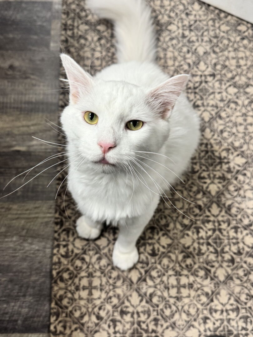 Don’t let the royal fluff fool you—this two year old Turkish Angora is equal parts graceful and goofy. He loves to explore, chase toys, and supervise everything you do. Smart, social, and very affectionate, he enjoys being part of the action and will happily follow his people from room to room. Life is never boring with this charming little companion. For inquiries, email catinquiry@angelsrescue.org An adoption application for this cat can be found and submitted at https://www.angelsrescue.org/adoption-form-cat/ Please be sure to like our Facebook page https://www.facebook.com/angelsrescue.cats