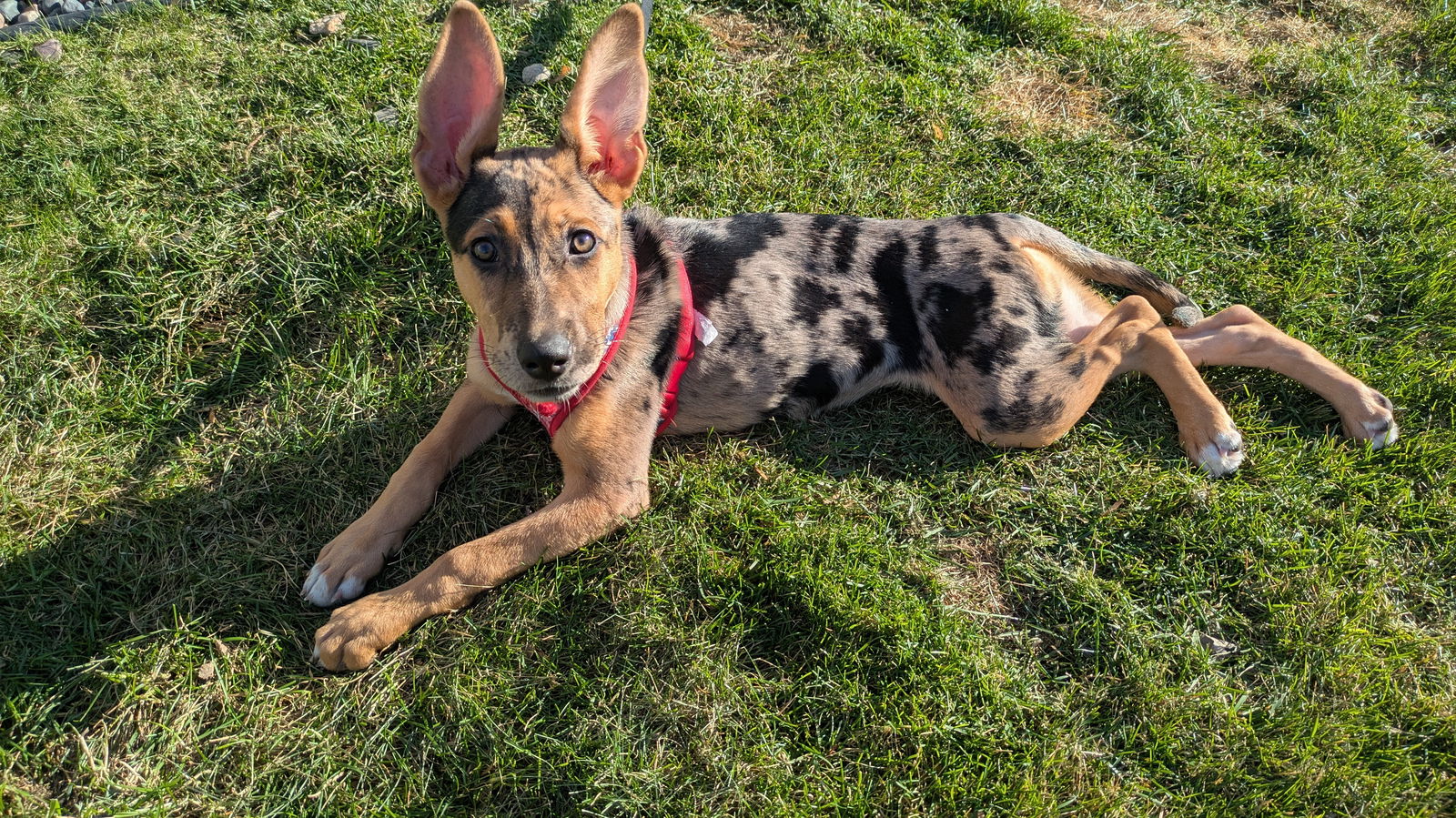 See Shaylee’s HomepageGo to our official websiteYou can fill out an adoption application online on our official website. Thank you for stopping by to see me! Please fill out an application to set up a private meeting. Keep checking back for upcoming events I will be attending! Shaylee is the life-of-the-party little sister who shows up with bed-head ears, a squeaky toy, and zero plans except fun. This baby Catahoula mix is a happy, bouncy, goofy ray of sunshine who spends most of her day playing with her puppy brother, showing off her puppy zoomies, and narrating her own adventures like she’s the star of her own reality show. She’s picking up all the important life skills by watching the big dogs around her, including the very serious chihuahua mix who communicates in side-eye. Shaylee now understands that not everyone wants to wrestle and she’s super respectful about it. She plays beautifully with dogs of all ages and sizes and greets every human like a long-lost friend. She hasn’t met tiny kids yet, but she adores her foster’s teen and loves being close to her people when she finally takes a break from puppy shenanigans. She’s getting better every day with potty training and leash walking, and she’s a champion eater who thinks treats are a lifestyle. Crate time is going well too—she voices her feelings at first, but then settles in for a nap like the sweet baby she is. Shaylee is sweet, spunky, full of heart, and equipped with some truly magnificent ears. She’ll thrive in a home that enjoys puppy energy, goofy charm, and the kind of love that comes with having a tiny shadow following you around. If you’re looking for a playful, affectionate, bright little buddy to grow up with, Shaylee is ready to bounce into your life and make you laugh every single day. **Obedience classes are required when adopting this puppy from Underdog Rescue. Many of our puppies have a mama who was not properly socialized before coming to Underdog Rescue. Since coming to Underdog, this puppy has been in a socialized and loving home, but that needs to be continued with its Adopters. Training classes teach puppies the ins and outs of being a pet while creating a bond with their new Adopter. Obedience classes are key to creating a relationship with your puppy while having it be a happy and successful member of society. Proof of Obedience Class registration is required for this puppy before adoptions can be finalized. If you would like some suggestions, we would be happy to send some trainers who have experience with Underdog Rescue, but a Basic Obedience class in your area should work! Please note that some of our dogs are obtained from shelters, surrendered to our care, or released from breeders. Each animal's bio is based on our experience of the animal within our care, an educated guess based on physical characteristics, temperament and information shared. Each dog receives basic grooming when coming into rescue, but for some dogs they have not received grooming attention until recently and grooming may be required shortly after adoption. This will be at the adopter’s expense, so we encourage you to research the breed and be prepared for grooming expenses. Underdog cannot guarantee hypoallergenic or non-shedding qualities of any dogs in our rescue. Some of the animals come from situations where they are lacking experience in a home and confidence in humans. In turn, they require another companion dog and/or a fenced in yard in their forever home in order for them to feel safe. If you are interested in a particular dog whose bio states those needs and do not currently have them, please understand that your home might not be the right fit. Please use the filter on our Adoptable Dogs page to find the perfect match for your home. This puppy requires an application fee. This fee must be paid within 24 hours, or your application will be considered void. We will not review or contact applicants that have not completed the payment portion. Puppy Applications will be responded to within 5 business days, after receipt of the application fee. Please understand that paying the fee does not guarantee you will be approved to adopt the puppy. Our goal is to place puppies in homes that are suited for their individual needs. You may be willing and able to provide a great home, but if it doesn’t meet the specific needs of the puppy, we will not approve your application. We accept applications for puppies until we have a candidate that meets all of the requirements needed for the specific puppy and they have been contacted to review the adoption process as well as agree to all of the terms to move forward. ***Be sure to check your spam/junk folder as sometimes our emails end up there*** If you have other questions about me you can email Underdog Rescue at <inquiries@underdogrescuemn.com> ADOPTION EVENTS: Adoption events are updated at the top of each dogs animals' as their foster home signs up. Check back for updates on which events they will be attending. If an event is not listed within their bio above, the animal is not planning to attend. Please understand that all of our pets are in volunteer foster homes and sometimes "life" happens and the foster family cannot make it to their scheduled adoption event. If you are traveling from a far distance to meet a specific animal, please understand we cannot guarantee event attendance. We recommend filling out an application and we will set up a private appointment. Private appointments are only scheduled after an application is submitted and approved. ADOPTION PROCEDURE: The first step in our process is to complete an online adoption application on our website: http://www.underdogrescuemn.com/adoptionprocess/ Note: In most circumstances Underdog Rescue will only adopt within 60 miles of Minneapolis, MN. All of our foster animals can be seen by appointment with an approved adoption application. Contact us at http://www.underdogrescuemn.com/contact-us/ if you 