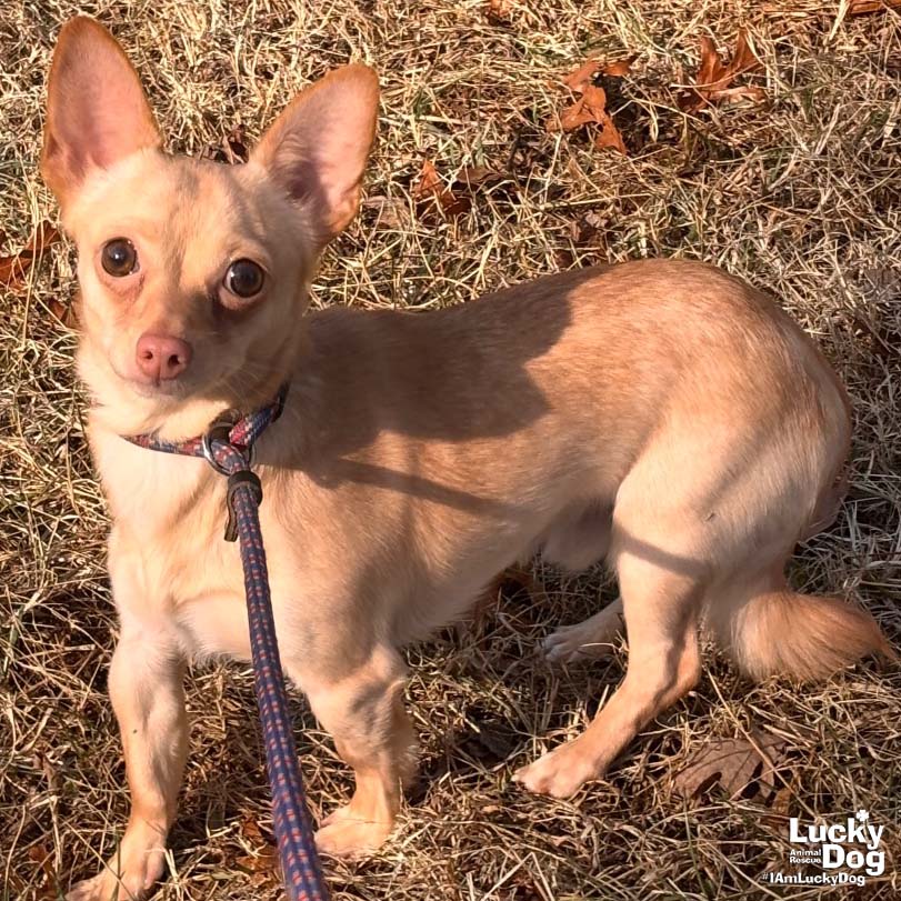 sweet small boy seeking fresh start and love! SHRIMPY NEEDS A FOSTER OR FOREVER HOME!!!! Name: Shrimpy Best Guess for Breed: Chihuahua mix Best Guess for Age: 7 months as of February 2025 SEX: Male Approximate Weight: 8.4 lbs as of 2/18/25; he is still growing. Gets Along With: Shrimpy does well with other dogs, We haven’t seen him with cats but he can be tested if you have them. We would be cautious placing Shrimpy in a home with children under 12 years old because young kids can often scare small breed dogs with their level of energy or noise. Children would need to be supervised closely to ensure their interactions with the dog are calm and gentle in nature. We would be happy to discuss this more in depth with any applicant. Currently Living at: Rural shelter; needs a foster or forever home in the DC area to get his freedom ride here on 2/22! Shrimpy is Looking For: A new name. Why add insult to injury? Sure, he may be a XXS pup but he’s got such a big heart for life! Sniffy walks, romps in parks, all the adventures his humans can dream up – yes, please, he’s not long out of puppyhood and hasn’t seen nearly enough of the world! Snuggles and cuddles and play time are on his wish list as well (so many toys out there – which ones are right for him?). Throw in a cushy dog bed and quality kibble and you’ve got his dream home! In exchange he promises adoring gazes (how can anyone resist those bug eyes?!) and little tail wags and loyal companionship for all his days. What do you say? Is Shrimpy (insert better name here) the one for your lap and your life? What My Foster Says About Me: We will update this once he has arrived in the DC area and spent some time with his foster Lucky Dog cannot guarantee any dog is housebroken. All of our dogs are working on their crate training. TO ADOPT: The adoption fee for this dog is $460, which includes the cost of routine vetting, including vaccinations and spay/neuter. If you are interested in adopting, please complete the Adoption Questionnaire online at bit.ly/adoptaluckydog . Lucky Dog Animal Rescue does our best to provide accurate information about the dogs we have for adoption. That said, we cannot make any guarantees about age, breed or temperament. Thank you for contacting Lucky Dog Animal Rescue and helping to save a life! Please visit us online at www.luckydoganimalrescue.org . BE A FOSTER!!! Fosters make it possible for Lucky Dog Animal Rescue to save and care for homeless and abandoned dogs! To learn about fostering, please contact fostering@luckydoganimalrescue.org! BE A SPONSOR!!!! Sponsors help Lucky Dog support the many dogs we save. To learn more about sponsorship, please contact info@luckydoganimalrescue.org !