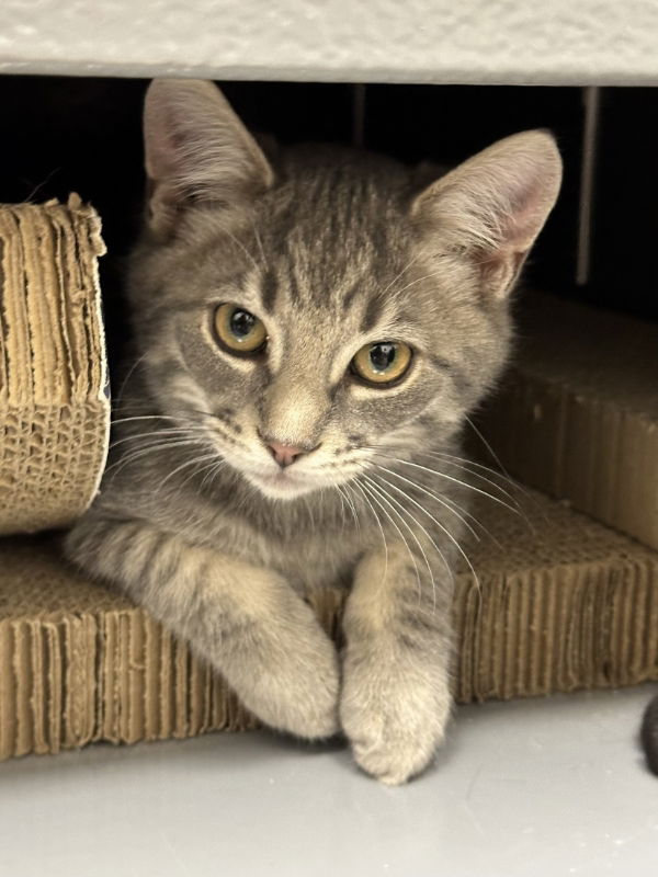 Silber is a comedian. His purr is as apparent as his silver and gray coat and he is always the first to greet you. He comes when his name is called and a cuddle is the reward he loves best. Silber has never seen a string, a sunbeam or a dust bunny that wasn’t the best toy ever. Silber and his brother Schwarz are the best of friends. Both have impeccable bathroom and dinner habits, no kicking litter everywhere, splashing in the water bowl, or overturning the kibble. Both get along with their adult foster uncles. No known experience with dogs or young children. Their foster adds, ‘They don’t have to be adopted together, but they are best buds and cry when separated for too long.’ The brothers are playing in our West Chester PetSmart adoption center. They would love to meet you. Thank you! https://forgottencats.org/adoption-application/ . (Foster: Lola F.)