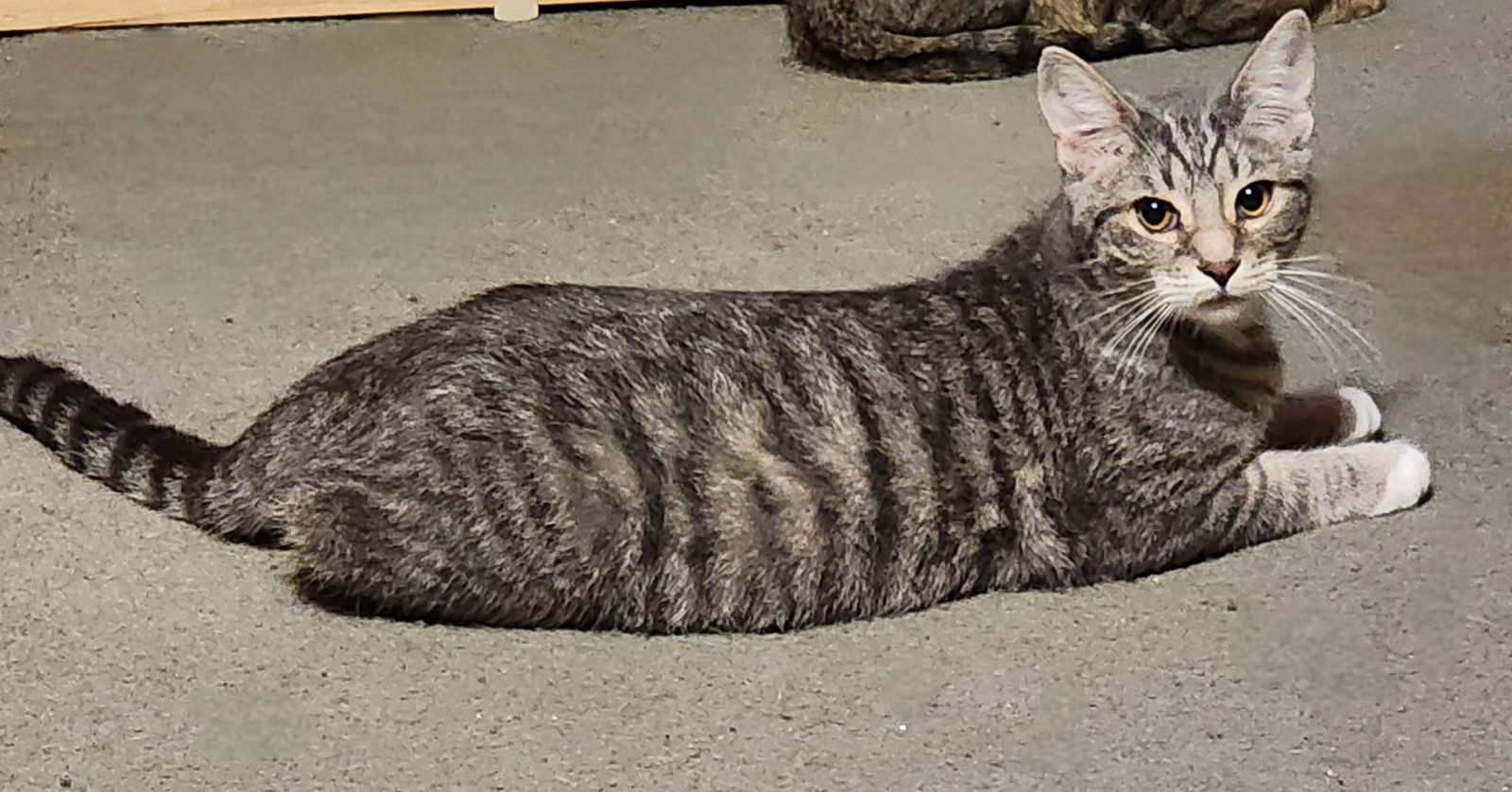 Silver is a sweet 1.5yr old boy. He loves to talk to his humans and toys of all types. Silver can be a bit shy at first, but quickly warms up. Silver loves lap time in the evening with his foster family on the sofa. He would do well as a single kitty and also gets a long with his foster mom's big, well-behaved doggies. Silver would do well in a home with children as long as they're respectful of him. He would also be perfect for a retiree as well.