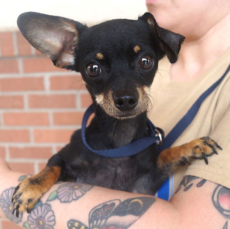 BREED-Chihuahua Mix; SEX-Male; SIZE-Small; WEIGHT-5 lbs.; AGE-Approximately 2 Years; SPAY/NEUTER-Yes; HOUSETRAINED-Currently Uses Doggie Door; GOOD WITH KIDS-Yes; GOOD WITH DOGS-Yes; GOOD WITH CATS-Unknown; HISTORY-Rescued From A Local Shelter; ADOPTION FEE-$300;Hi, I’m Simon, the most charming rascal you’ll ever meet! Now, you may be wondering how a fine fellow like me ended up here. Well, it involves a squirrel, a trampoline, and a very surprised mailman. Let’s just say, my acrobatics were a bit too much for the neighborhood watch. Oops! But don’t worry, I’ve retired from my trampoline antics. Now, I’m all about the snuggles and fetch games. I’m just a small guy with a big heart, looking for a forever friend. I promise, adopt me and you’ll never have a dull moment!