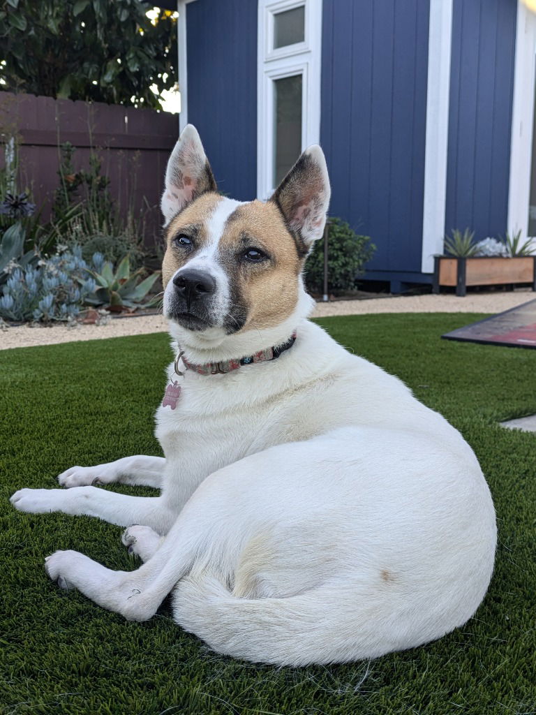 Meet Simone! DOB: September 2021Weight: 35 lbsDisposition: Sweet, Appeasing, Loving! Simone is food motivated and LOVES other animals. She’s easy to train, not pushy and would love a quiet home to rest her head, but with a family that will get her out and about. She loves being outside, walking and sniffing, and working on her confidence.History: Surrendered, emaciated, to a shelter in Riverside county with 26 other dogs. Rescued by TBL in August 2024 to find her forever home!Best Home: Amazing Qualities: Just an angel!If you’re interested in meeting this dog, please visit our website to fill out an adoption application: www.thebarkinglot.net/adoptOur dogs are located in San Diego County, CA. We will happily consider out of town applications and can conduct virtual play dates with interested adopters. We have monthly transport to various locations in the Pacific Northwest, individual arrangements would need to be made for other locations across the US and Canada.To initiate the adoption process for this dog, please complete our online application by clicking below. Your adoption coordinator will respod to you via email once they receive your application: www.thebarkinglot.net/adopt
