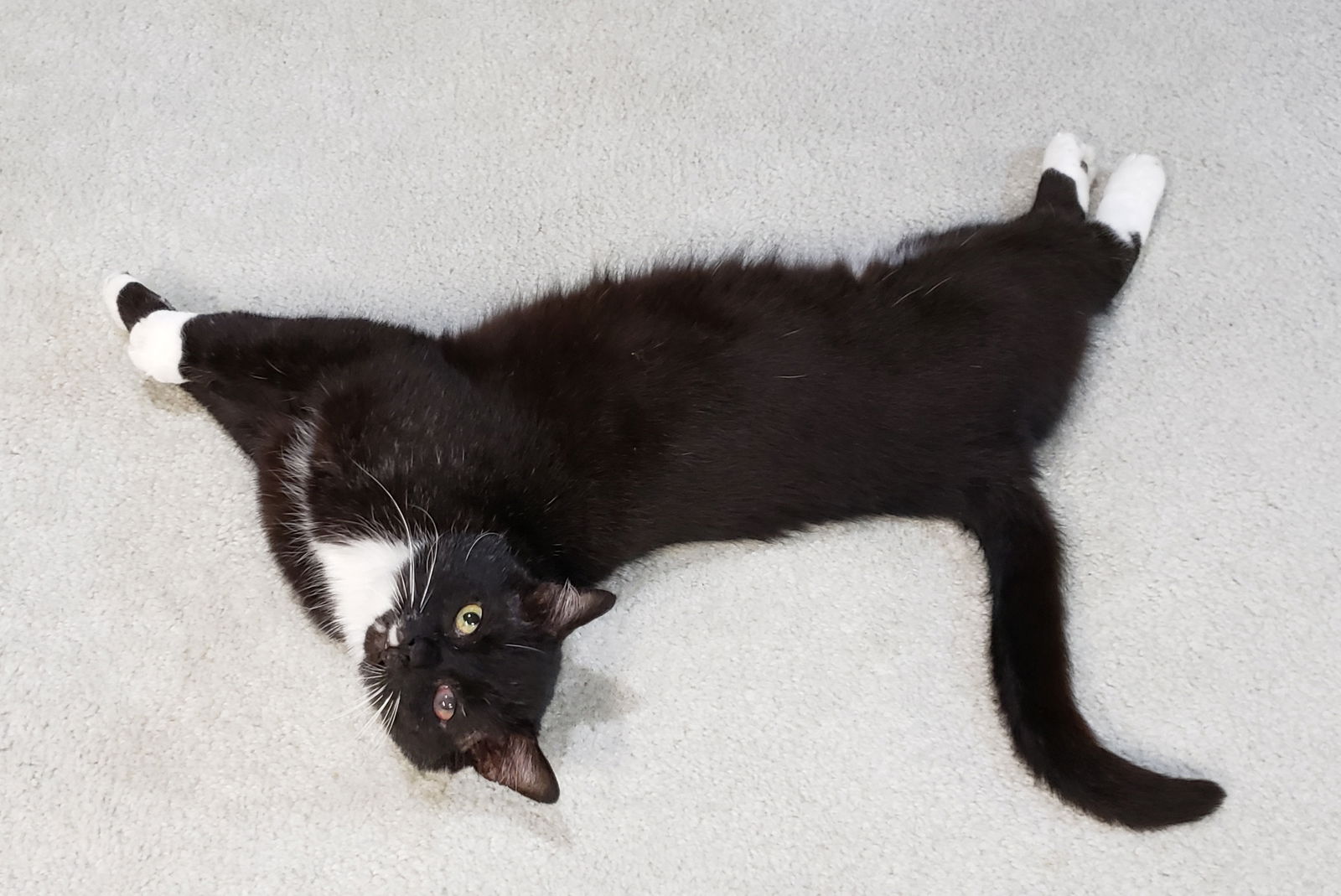 SINATRA is a handsome, well-behaved adult black & white Tuxedo cat (approx. 10+ years old), a stray who had been living outdoors, fed by a good samaritan. He's so very friendly, easy-going and very talkative (he chirps & chortles & trills & sings to you – has a large assortment of varied kitty noises!) and is so happy when you pet him that he can't help but make biscuits on the floor, in the air, on you; whatever! He also likes to be brushed! (We think that he's actually a dog in a kitty suit!) He had been living outside and was in pretty rough, beat-up condition; found to have BB pellets under his skin – he'd been shot with a BB gun!! He also had old scars & an abscess on his head (healed), a broken & infected tooth (taken care of), a scarred eye (eye-drops help with that) and a painful hip (no longer being painful) plus he's FIV+. So Purrfect Friends has taken him in to get him the medical help he needs & to help find him a wonderful new home. His left eye was diagnosed with Glaucoma, and daily eye drops were able to control the pain & progression for awhile; but he recently had to have it removed. He developed severe mouth pain; diagnosed with Stomatitis and all teeth were removed; he's completely recovered and pain-free from that. ** Sinatra's blood test indicates that he has FIV ( Feline immunodeficiency virus ) , which causes a weakening of the cat's immune system. Don't let it scare you away – it's not contagious to other cats except thru deep fighting, biting wounds, so neutered pet cats can live together very comfortably & safely. Sinatra is currently housed alongside other FIV negative kitties in his foster home. Many, probably most FIV+ cats live long healthy lives; others may get sick occasionally & need vet care more quickly because of it. Here is a good link for info https://www.humanesociety.org/news/fiv-positive-cats Adoption fee (60.00) includes Spay or Neuter, vaccinations, combo-tested – for FeLV & FIV, and micro-chipped. If interested in adopting, please fill out our application at https://www.pfcatrescue.org/adoption-application/
