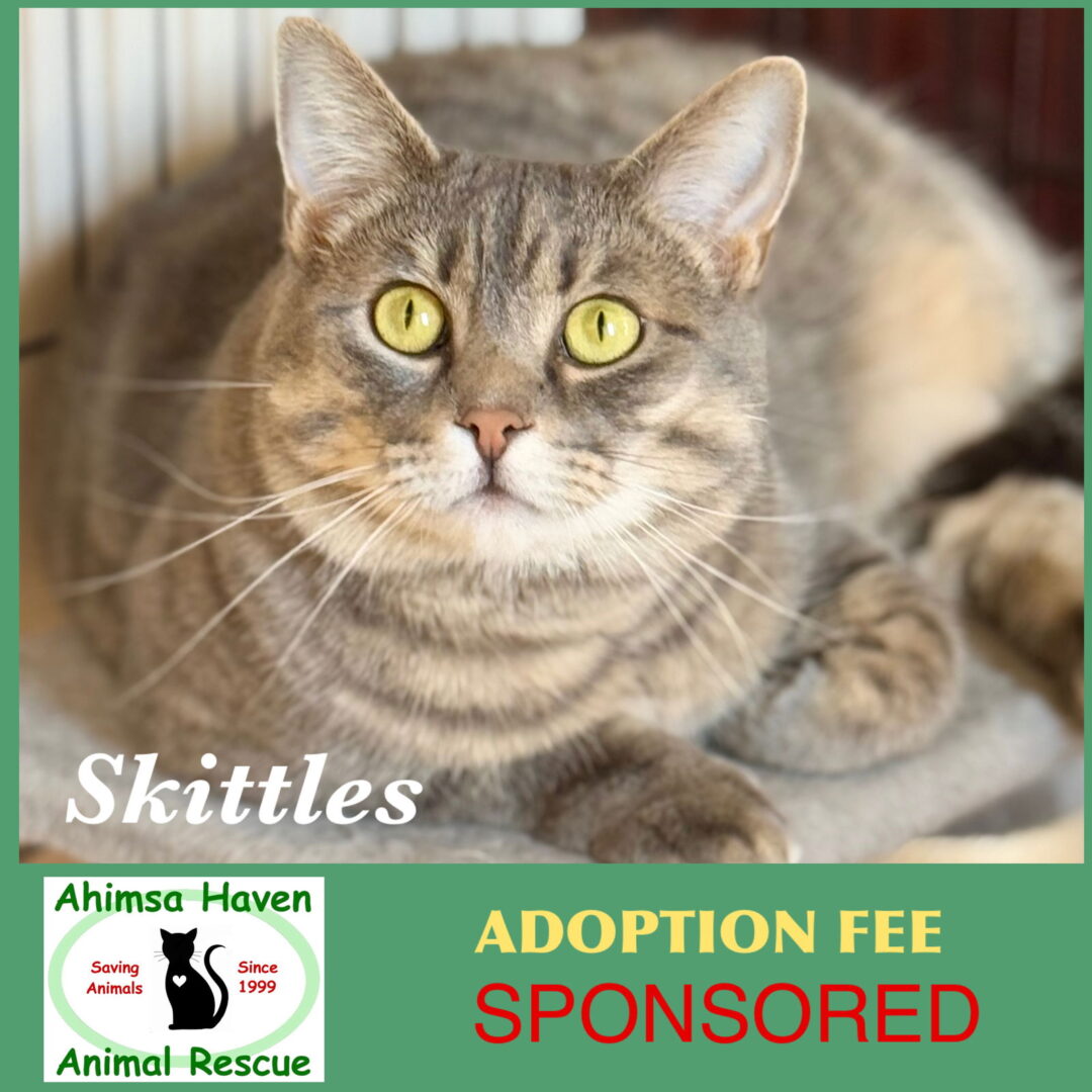 Hello, I’m Skittles! I am 1 years old. . I’m a pretty independent girl, but I do enjoy the company of humans. I have a playful side, but sometimes I get a bit too excited and might nibble or bite.. Don’t worry, I never mean any harm! I prefer to be the only cat in the house, as I like all the attention on me. I need a cat-savvy owner who can understand and respect my boundaries. I promise, once we get to know each other, we’ll be the best of friends. So, why adopt me? Well, I’m young, full of life and ready to give you all the love I have. I promise to keep you entertained and be your loyal companion. Will you give me a chance? If you are interested in adopting me, please fill put an application online at ahimsahaven.org . Meet and greets are with an approved application by appointment only. As always, cats that are ready to be adopted are spayed/neutered, have age appropriate shots, are micro-chipped, dewormed/deflead, and FEL/FIV tested.