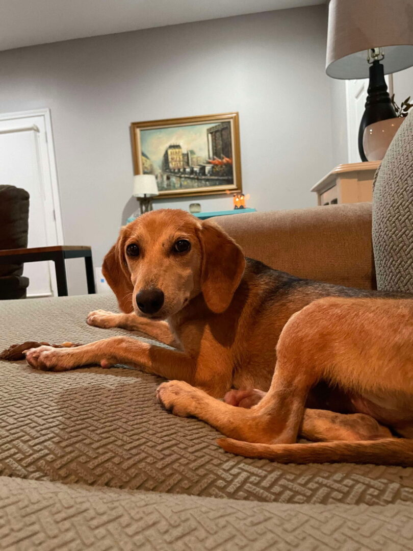 Sky is a sweet but timid 8m old beagle, maybe mixed? She gets along great with kids, dogs and cats. She is an easy going girl and would make someone a wonderful new best friend! She is spayed, microchipped, up to date on vaccines and prevention. Her adoption fee is $300. Please use this link for the application to be approved for adoption: https://toolkit.rescuegroups.org/of/f?c=SGVJMGQY. Sky will be at our adoption event this Saturday at My Pets Vet. Any dog adopted from that event has their adoption fee sponsored by the vet clinic so hurry up and get your app approved so she can come home with you!