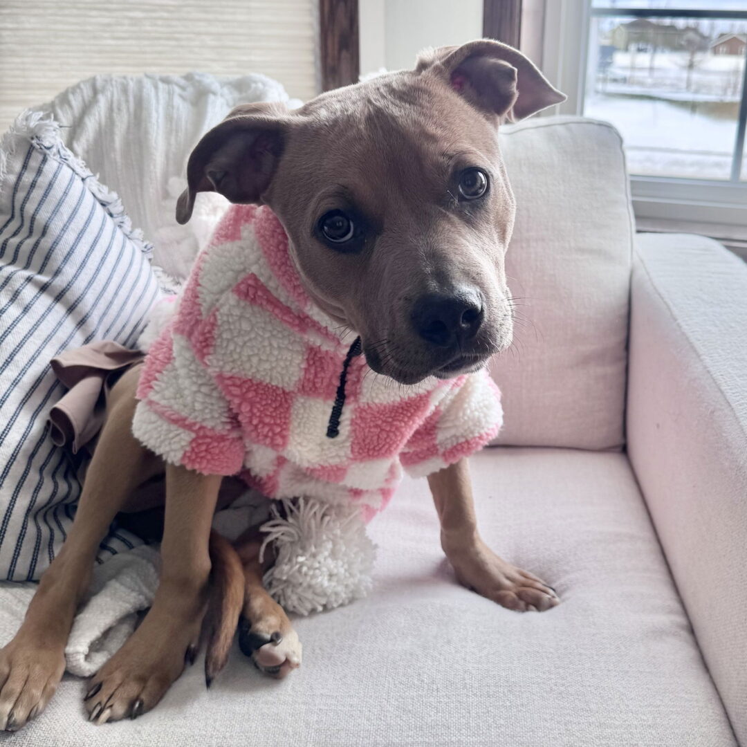 {s3829code380/} If you would like to provide this dog a loving home, please fill out a pre-adoption application. Have a question? Please read our Frequently Asked Questions and Adoption Processed Explained documentation. _________ B I O ______________ Name: Sky Size: ~Medium range: 26-60 lbs Adoption Donation: $250 (applicable sales tax included)  Adoption fees may be paid by cash or check.  Other:  Spayed Female, Vaccinations current, Microchip Sky wants to fly into your heart. Foster Home Feedback 12/27/2025 Foster Home Feedback: Meet Sky, she is a little bitty pocket pitty that loves to cuddle and dislikes the cold. She is very treat motivated and working on learning some new tricks and manners. Sky is a major Velcro doggy and has to be where the people are, she sleeps in bed with my daughter and is a great little heater. Sky can be vocal when we leave so no shared walls. Sky would love a friend to play with, she’s not super high energy, pretty mid-level, but does like a good game of chase or tug with the right playmate. Our resident dog isn't the most playful but will give her the time of day every once in a while. It’s best practice to keep high value bones up and away as she will snatch them. Sky doesn’t know her strength and will likely knock over a small child while walking around. She does great with our 12 and 16-year-old girls. Sky would love to be your Velcro Baby, adopt Sky! To view additional dogs available for adoption, please see our website: www.4luvofdog.org
