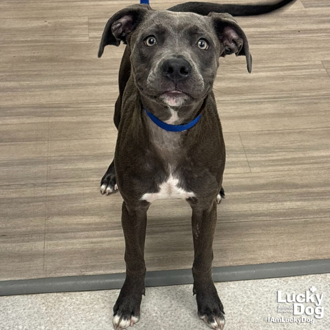 young girl eager for fresh start and love! SKYLAR NEEDS A FOSTER OR FOREVER HOME!!!! Name: Skylar Best Guess for Breed: Lab and terrier mix Best Guess for Age: 7 months as of November 2025 SEX: Female Approximate Weight: 32 lbs as of 11/21/25 – she is still growing! Gets Along With: Other dogs! We haven’t seen her with cats or kids but we are happy to discuss integration techniques with any potential adopters! Currently Living at: South Carolina shelter – needs a foster or forever home in the DC area to get up here! Skylar is Looking For: Her forever home! This pretty girl is not long out of puppyhood and she has so much to see and do. She wants to do it all by the side of her humans. Long sniffy walks, romps in parks, and all the adventures they can dream up – yes, please! And quality kibble and a cushy dog bed and dog school so she can show how super smart she is. But most of all she wants to know she’s safe and loved, where she belongs, for all her days. In exchange she promises so much love and loyalty. What do you say? Can you see her by your side? What My Foster Says About Me: We will update this once she has spent time in foster care. Lucky Dog cannot guarantee any dog is housebroken. All of our dogs are working on their crate training. TO ADOPT: The adoption fee for this dog is $460, which includes the cost of routine vetting, including vaccinations and spay/neuter. If you are interested in adopting, please complete the Adoption Questionnaire online at bit.ly/adoptaluckydog . Lucky Dog Animal Rescue does our best to provide accurate information about the dogs we have for adoption. That said, we cannot make any guarantees about age, breed or temperament. Thank you for contacting Lucky Dog Animal Rescue and helping to save a life! Please visit us online at www.luckydoganimalrescue.org . BE A FOSTER!!! Fosters make it possible for Lucky Dog Animal Rescue to save and care for homeless and abandoned dogs! To learn about fostering, please contact fostering@luckydoganimalrescue.org! BE A SPONSOR!!!! Sponsors help Lucky Dog support the many dogs we save. To learn more about sponsorship, please contact info@luckydoganimalrescue.org !