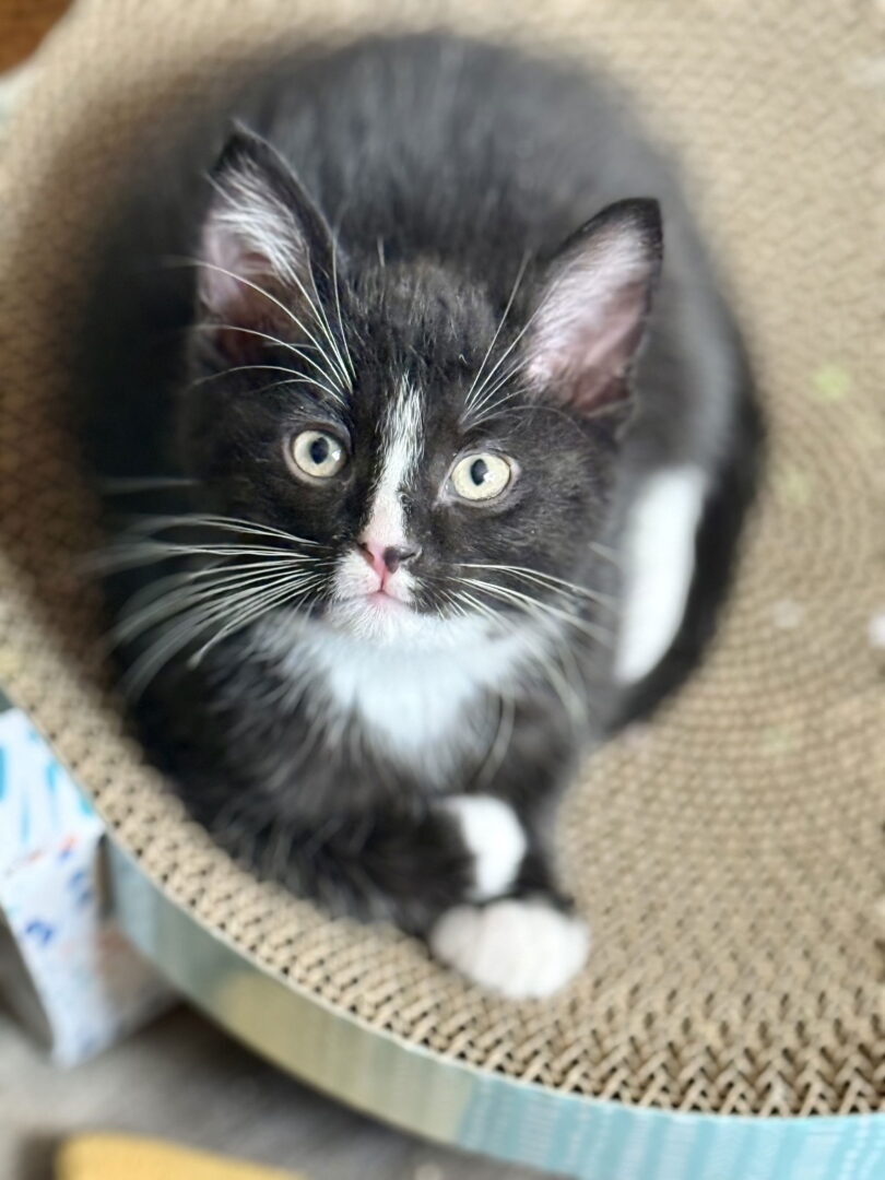If you are interested in adopting an ARPO pet, please visit our website, for details about our fees and process, and to complete our Adoption Application. ARPO limits adoptions to within 50 miles of Indianapolis. We do not have a shelter; all pets are in volunteer foster homes. Smithwick is a handsome tux kitten that you would like to go to the bars and hang out with—if only they allowed kittens! This dapper little guy is as smooth as the drink he’s named after. He’s a sweet boy who loves to play and will give the best cuddles, always ready to charm his way into your heart. He is also the loud one at the bar meowing when he needs any sort of attention. Smithwick thrives with feline companionship and would love to have a kitten friend in his new home. Ideally, he’d love to be adopted with one of his littermates, also named after Irish drinks, so they can continue their fun-filled adventures together! Smithwick is neutered, utd on vaccines, microchipped and his momme tested negative for FIV/ FeLV. He is being fostered on the southside of Indianapolis 12/16/24 birthday. If you are interested in adopting an ARPO pet, please complete the online Adoption Application. If you would like to donate to this pet's care, please click here.