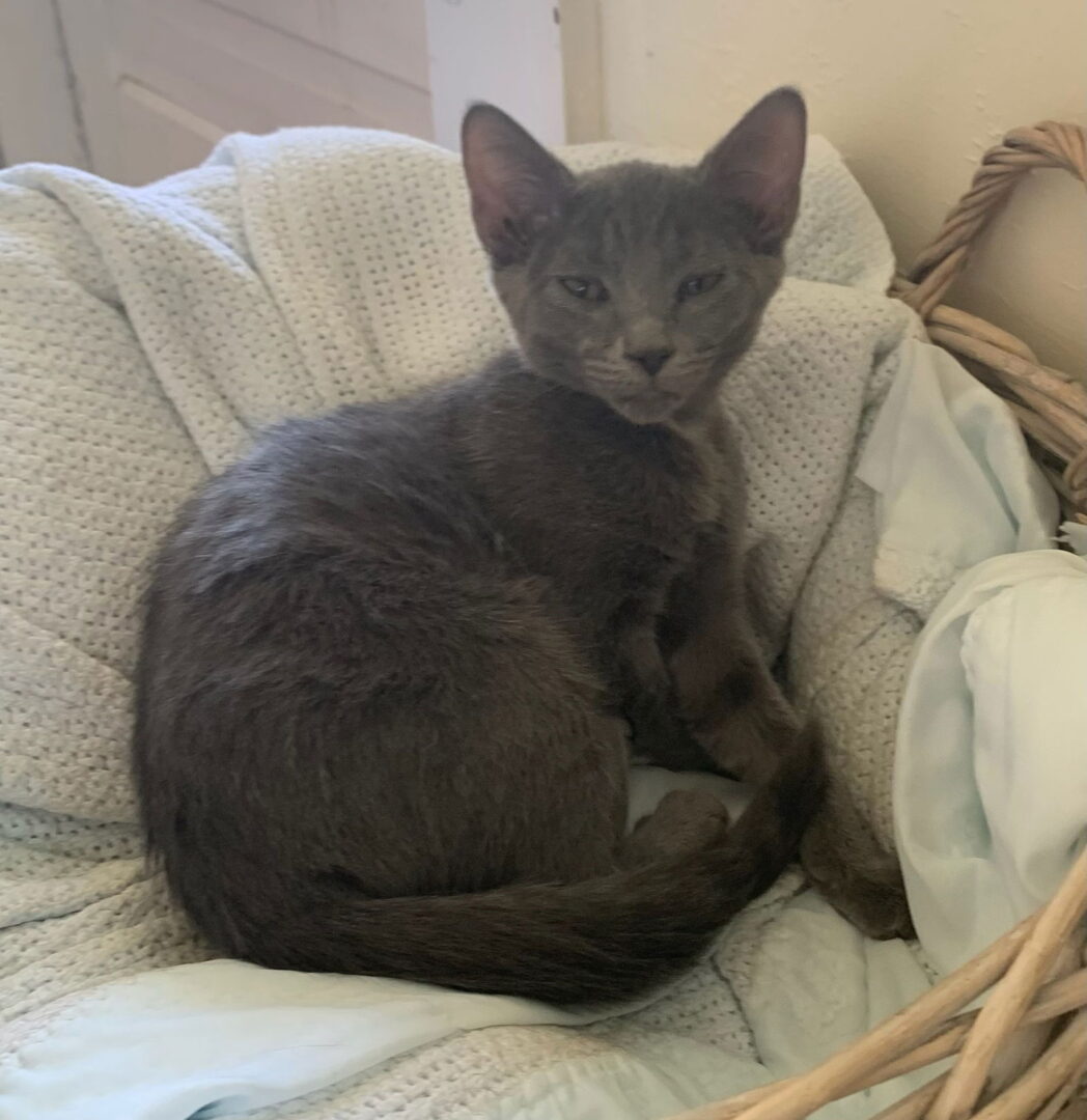Hi, my name is Smitten and I'm about 6 1/2 months old. My siblings and I were born to a feral mom. Then we were surrendered to Bond County Humane Society so we can find loving furever homes. We are living in a foster home with other cats. I am a beautiful grey kitten. My foster mom says I was a little timid, but I am getting much braver. I like to curl up next to her, but I don't really like to be held very long. I like to be petted. I love playing with feather toys on a stick. My favorite play friend is my mama cat Marble. I like to carry my toys in my mouth, and I growl to let everyone know I have something! I am available for immediate adoption. I am spayed, UTD on vaccinations, tested for FeLV/FIV, treated for internal and external parasites and micro chipped. My adoption fee is $100. If you are interested in making me a member of your family please complete an Adoption Profile in person or on-line at www.bondcohumane.org . Email the completed profile to the address provided. A copy of our policy regarding warranties, refunds and returns is available upon request.