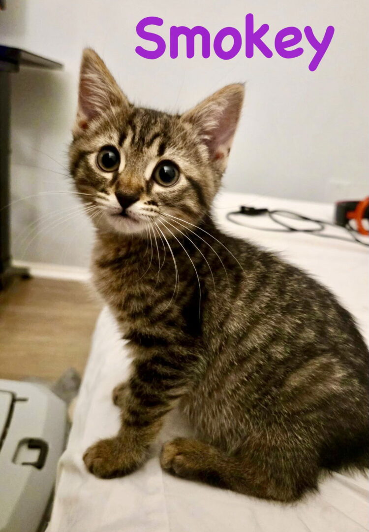 See Smokey’s HomepageGo to our official websiteADOPTED__Smokey is a fun, easy-going kitty who loves playing with her siblings, Granite and Onyx. She may be slower to warm up, and sit back to watch the action til she’s ready to dive in. Once she gets going, she is so sweet and playful, loving belly rubs and snuggling on your lap for a nap. She may have a tiny “meow”, but a huge heart for you. Hoping you will be her fur-ever home. Smokey is over 8 weeks old and is ready for adoption. Interested in this Little Buddy? For the fastest response, please call our Adoption Coordinator at 703-431-5931 and leave a voicemail with your name, number and name(s) of the Little Buddy(s) you are interested in learning more about. Our Adoption Coordinator will return your call in 24-48 hours. Calls will be returned in the order they are received. Please only call once and remember to leave a detailed voicemail. Our adoption fee is $190 for a cat or kitten. This includes spay/neuter, microchipping, combo testing, age-appropriate vaccinations, deworming, flea treatment and any necessary medical care prior to adoption.