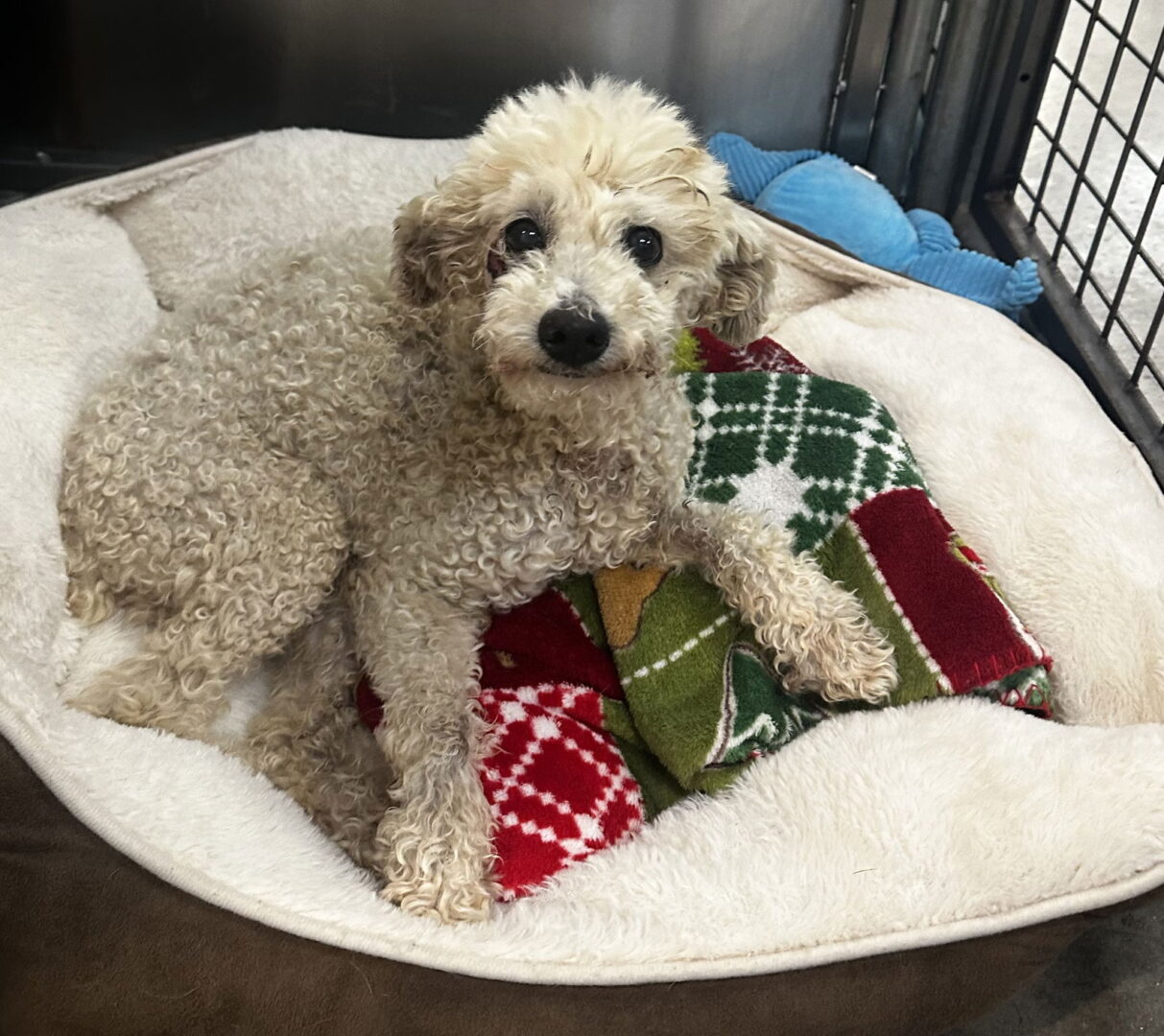 stray at Pinal. while co kenneled, was attacked by other dogs, significant injuries to face and body. Very sweet demeanor, lame on rear left leg, X-ray from Pinal shows broken femeral head, likely needs FHO.