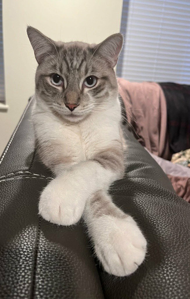Hi, I am Socrates. I have the most beautiful blue eyes, gorgeous markings. I am Siameselink point. I will be two years old in July 2026. I am very playful cat. Ilove to play with my wand toy. My favorite thing to do is watch birdsout the window. I like attention and snuggling. I am an inside cat. I dolike to be outside in the yard on a leash. Good news, if you take me, Ihave a sibling that needs to come with me. Her name is Hina. We arebonded. We bring each other lots of joy, love and comfort. Rememberwe are a pair and need to be together. If you are interested in adopting a CAWS pet, please fill out an online application at https://caws.org/adoption-application