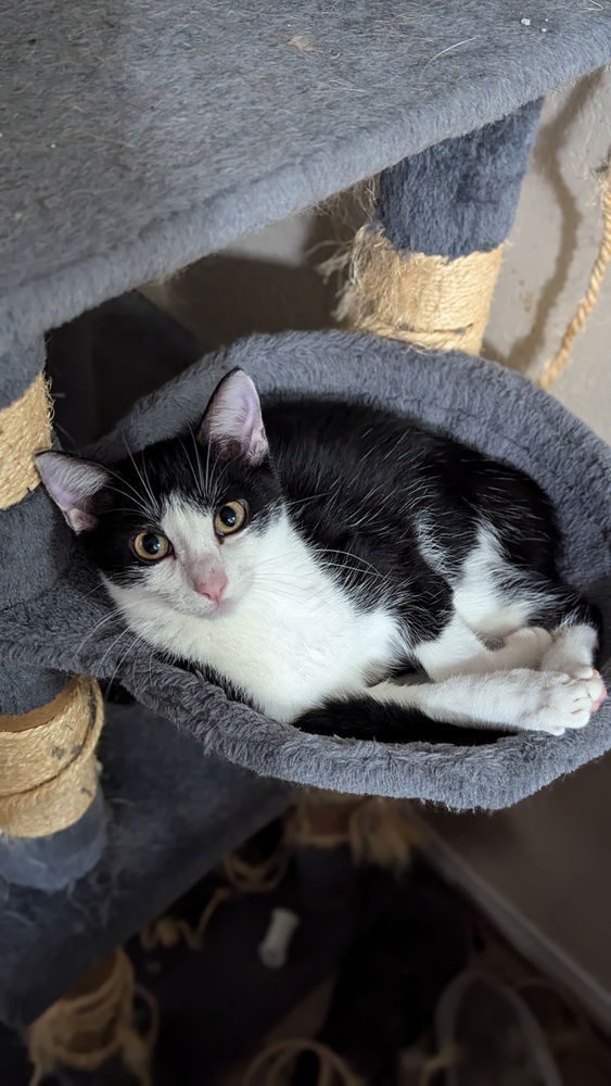 Meet Sophie, a young feline with a heart full of affection. She is a delightful blend of sweet and playful, curious and smart. Her gentle demeanor is paired with a lively spirit that's always ready for a game of chase-the-laser or a good old-fashioned cuddle session. Sophie's intelligence shines through in her quick learning of new tricks and her knack for problem-solving. She loves to explore her surroundings, always on the lookout for a new adventure. Sophie's friendly nature and endearing personality make her a wonderful companion. Her funny antics are sure to bring joy and laughter into any home. Sophie is not just a pet, she's a friend, a confidante, and a source of unconditional love. If you're looking for a companion who will fill your days with happiness, choose Sophie. She's waiting to share her love with a family who will cherish her as much as she will them.