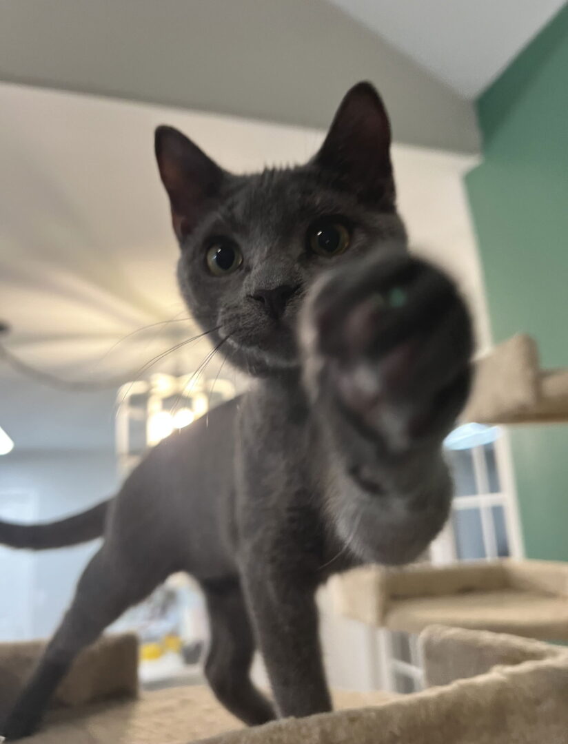See Sour Patch’s HomepageGo to our official websiteYou can fill out an adoption application online on our official website.Estimated DOB: 7/19/2025 Meet Sour Patch! This hilarious little firecracker will keep you endlessly entertained. A true wild child, Sour Patch is full of surprises—you never know if she’s about to lick your hair, nibble your fingers, or leap onto your back in a burst of playful energy. Her attention span may be short, but her curiosity is enormous, and she’s easily distracted by toys…or your hair…or, well, anything that moves! Sour Patch has incredibly soft fur—if she pauses long enough for you to pet her! She’s gotten much better about slowing down for affection and has become wonderfully cuddly when she decides it’s time. With her siblings, she’s a bundle of fun, zooming around the house and turning playtime into an adventure. She never wants to miss a moment and loves following her humans around to investigate whatever they’re up to. One of the best things about Sour Patch is that she’ll play with absolutely anything. She’s not even a little picky—if it rolls, crinkles, wiggles, or dangles, it’s her new favorite toy. But despite her high-energy antics, she also has a surprising couch-potato side. Out of all her siblings, she spends the most time lounging on the couch and clearly appreciates the finer, comfier things in life. Sour Patch has warmed up nicely to her mini schnauzer foster brother and enjoys playful interactions with him. She’s very curious about her adult kitty foster siblings, though she does have a habit of getting right in their faces to say hello. Because she can be a bit unpredictable in her silliness, Sour Patch would likely do best in a home with older children who can appreciate her spirited personality. If you’re looking for a funny, affectionate, mischievous girl who brings joy and laughter everywhere she goes, Sour Patch is your perfect match! Sour Patch needs to be adopted into a home with another active kitty or with one of her siblings. Siblings include: Skittles, Snickers, and Starbucks. Adoption fee for 1 kitty is $150 or $225 for two kitties. Sour Patch is spayed, up-to-date with age appropriate vaccinations, microchipped, and has tested negative for feline leukemia and FIV.