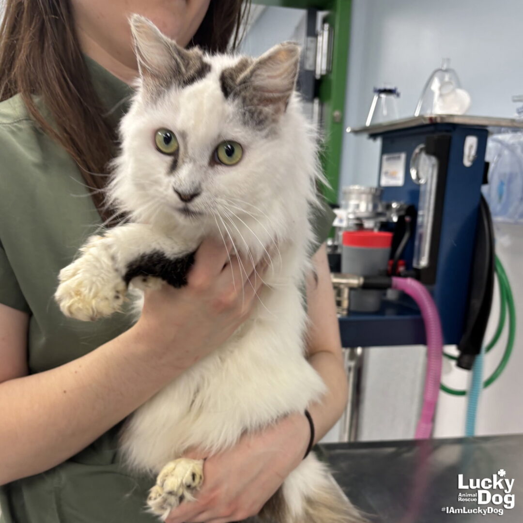 Please contact Lauren McCarty (laurenmc@luckydoganimalrescue.org) for more information about this pet.Handsome boy in search his forever home!SPECKLES NEEDS A FOREVER HOME! Name: Speckles Best Guess for Breed: Domestic Long Hair Age: 6 years Estimated DOB: 4/8/2020 SEX: Male Approximate Weight: 5lbs 5 oz Coloring: Brown and White Type of Hair: Long Gets Along With: With proper introductions, Speckles will likely get along with other cats, dogs and kids with an acclimation period. We’re happy to help with tips and tricks! Currently Living at: Shelter…coming to the DC area soon! Special Consideration: Speckles will have a dental prior to arrival I am Looking For: My loving forever family! Hi! I’m Speckles, and I am a cute little guy! I won’t ask for much- just some love, cuddles and lots of toys so I can run and play and be myself. What my Foster Says About Me: Coming soon! TO ADOPT: The adoption fee for adult cats is $200 ($350 for two cats adopted together). The adoption fee for a kitten (under 7 months old) is $220 ($380 for two kittens adopted together).If you are interested in adopting, please complete the Adoption Questionnaire online at bit.ly/adoptaluckycat. Lucky Dog Animal Rescue does our best to provide accurate information about the cats we have for adoption. That said, we cannot make any guarantees about age, breed or temperament. Thank you for contacting Lucky Dog Animal Rescue and helping to save a life! Please visit us online at www.luckydoganimalrescue.org . BE A FOSTER!!! Fosters make it possible for Lucky Dog Animal Rescue to save and care for homeless and abandoned dogs! To learn about fostering, please contact fostering@luckydoganimalrescue.org BE A SPONSOR!!!! Sponsors help Lucky Dog support the many dogs we save. To learn more about sponsorship, please contact info@luckydoganimalrescue.org !