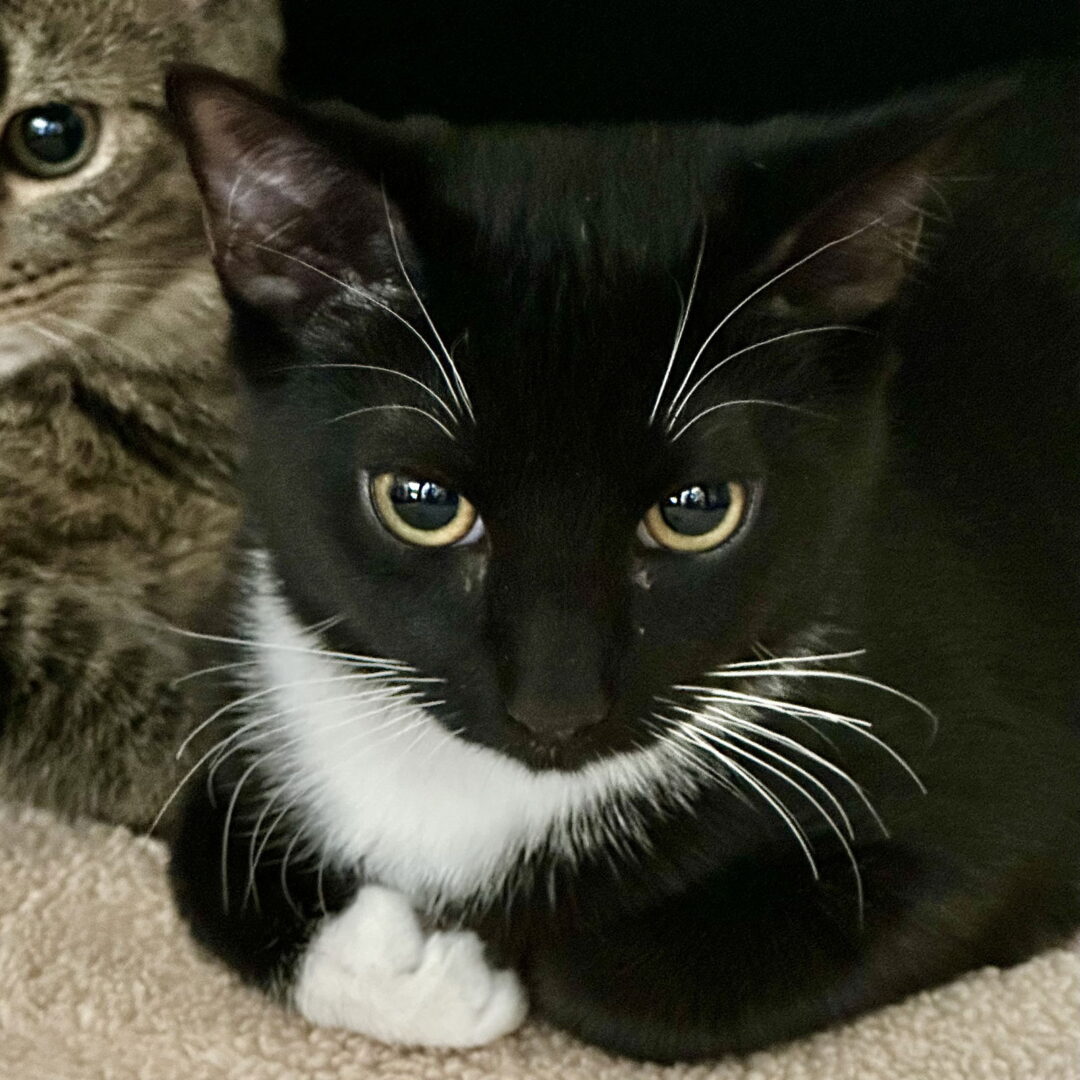 HISTORY: SPICEY was brought to F&F as a young solo kitten. She has been raised in a foster home with another similarly-aged solo kitten PUMPKIN. TEMPERAMENT: SPICEY is a sweet and adventurous tuxedo girly. She is full of personality and loves exploring her surroundings. She’s independent but loves to spend time with her foster parents. SPICEY is adventurous and curious about everything. She loves treats, especially a freeze-dried minnow. She’s also wonderful with other cats and dogs. SPICEY will need a young feline playmate in her furever home. AGE: born approx. 7/21/2024 MICROCHIP #: 941010003369585 DATE OF STERILIZATION: 10/21/24 VAX RECORD: FVRCP #1: 9/21/24, FVRCP #2: 10/14/24, FVRCP #3: 11/6/24; FVRCP expires: pending; Rabies expires: 10/21/25 FELV/FIV test: 10/21/24 neg ADDITIONAL INFORMATION: ADOPTION FEE: $100 If you may be interested in adopting, please complete our online application: https://www.fandfnm.org/application. Cat name(s) of interest can be included in your application. Completing an application is the best and fastest way to dialog with our team. For more information, visit www.fandfnm.org. [Santa Fe Animal Svcs. Permit #24-001]