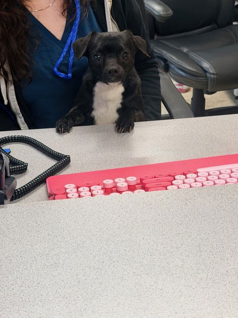 Meet our newest receptionist. While we absolutely adore Spike, we are sure reception is the right job for him. He keeps leaving his post to greet everyone! Spike is about 2 years old and 10.2 pounds, neutered, current on vaccines and prevention and ready for his new home! He will happily claim your lap as his own and have zero regrets about doing it. If you are looking for ten pounds lovin' then Spike might just be the guy for you. His adoption fee is $300 and he is available at mmahrescue.org. Our hospital is open for adoption visitation Monday through Friday from 7:30 to 5:00pm and Saturday's from 8:00am to 11:00am. If you have any questions please feel free to call us at 919-266-8177 or email pets4adoption@bellsouth.net. All adoption fees are cash or check only, we do not accept credit cards for adoption fees. To speed up the adoption process please visit our webiste, www.mmahrescue.org, to fill out an application and get pre-approved when you arrive to meet your new best friend! Prior to meeting an adoptable animal we do require an approved application to be on file, sorry for this inconvenience. Cat adoption fees are $50 for kittens under 16 weeks of age and $75 for kittens/cats over 16 weeks of age. Dog adoption fees are $150 for puppies under 16 weeks of age and $175 for dogs over 16 weeks of age.